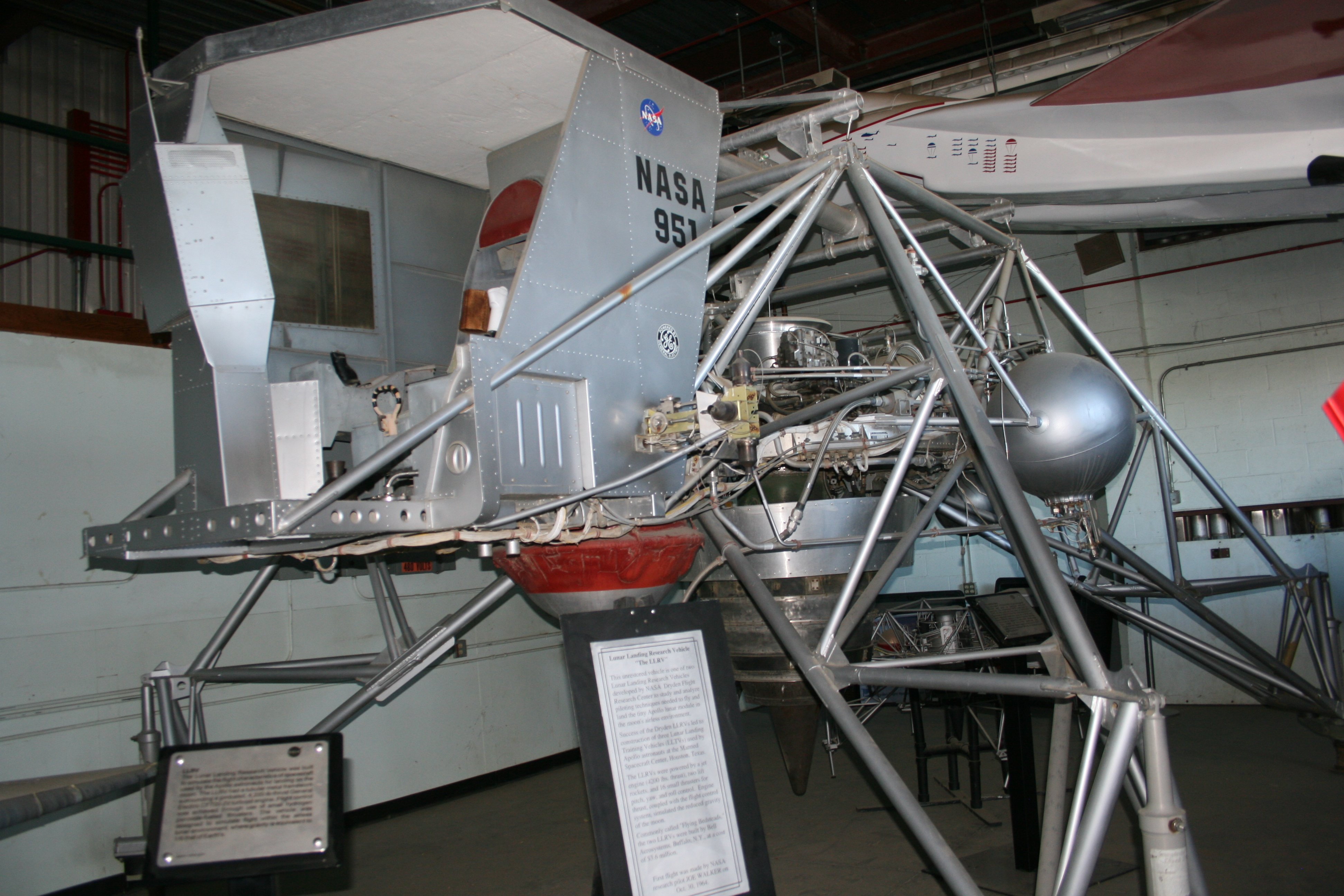 Seen from the other side, the LLRV was just a framework wrapped around a huge jet engine pointed downward. Not very stable, but a great training vehicle. The white box on top of the beam on the right is an analog (not digital!) computer, state of the art for the day – and about a billionth as powerful as your average smartphone of today.