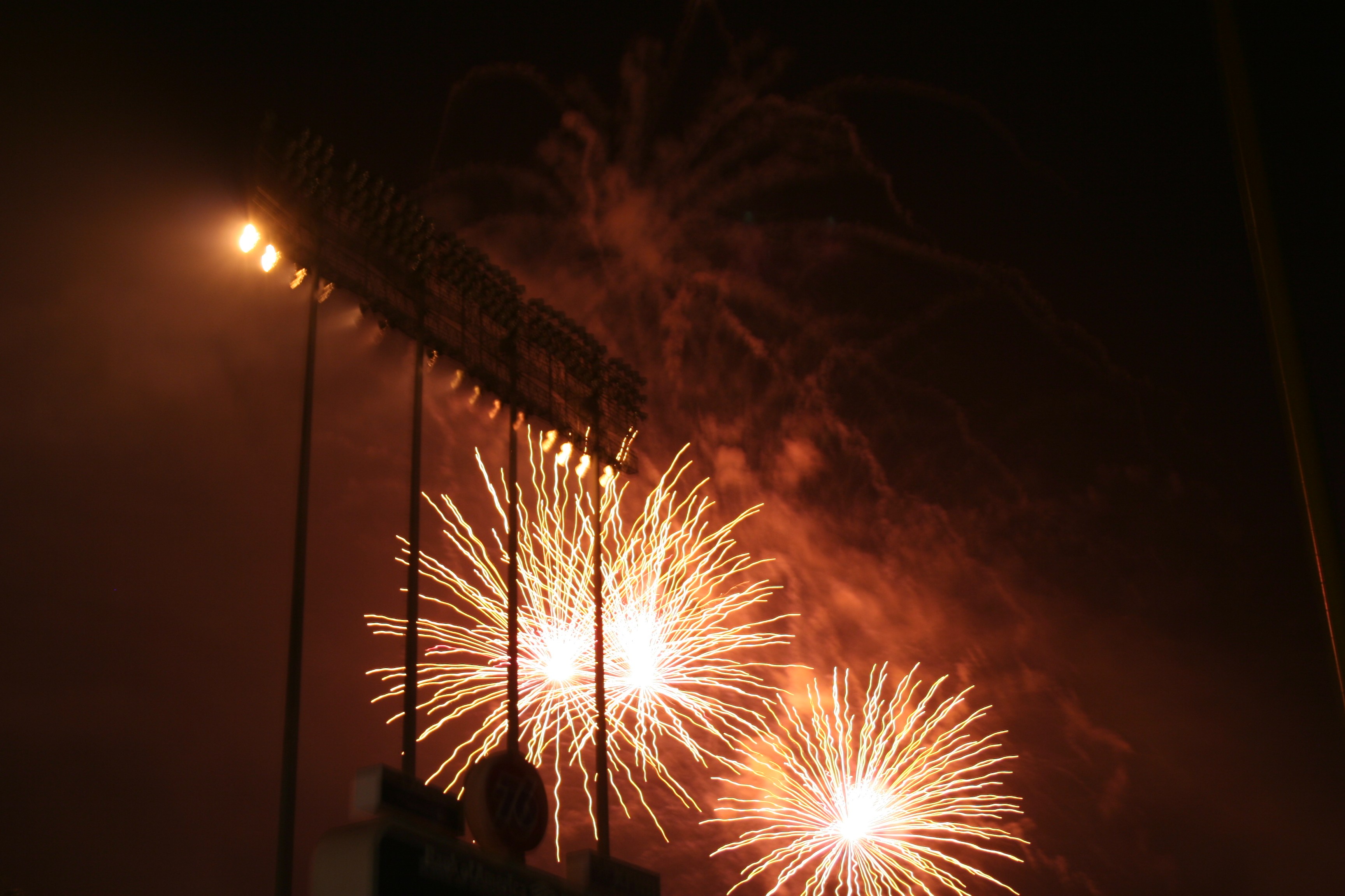 I don’t know if they still do it, but at least a few years ago on July 4th, they let the crowd come out and sit on the outfield grass at Dodger Stadium to watch from there. Mmmmmmm, real, honest-to-god, major league grass!