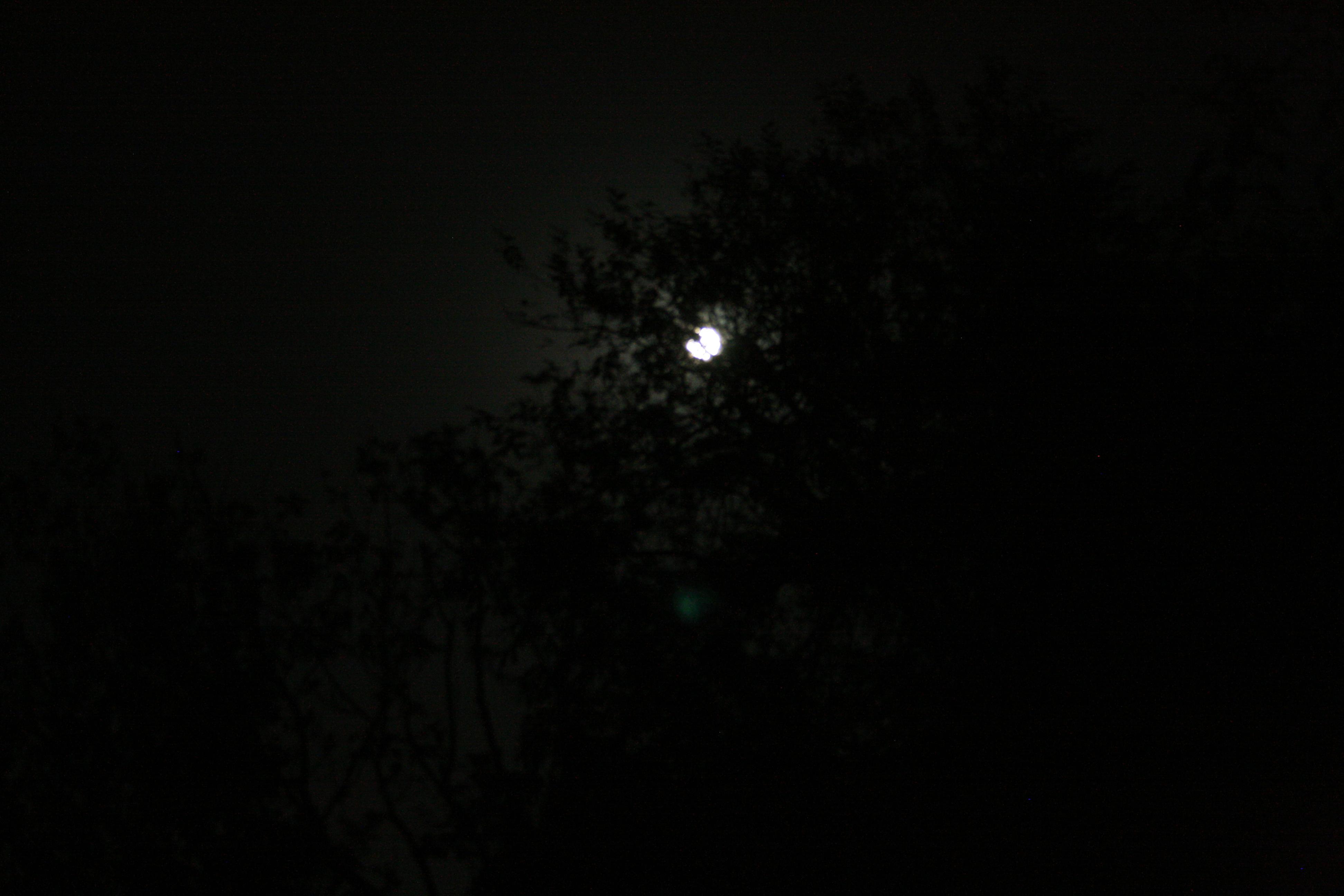 Finally, the ISS gone on its way, sneaking up through the trees was the 99.9% illuminated moon, heading for its own encounter with the Earth’s shadow in about eight hours.