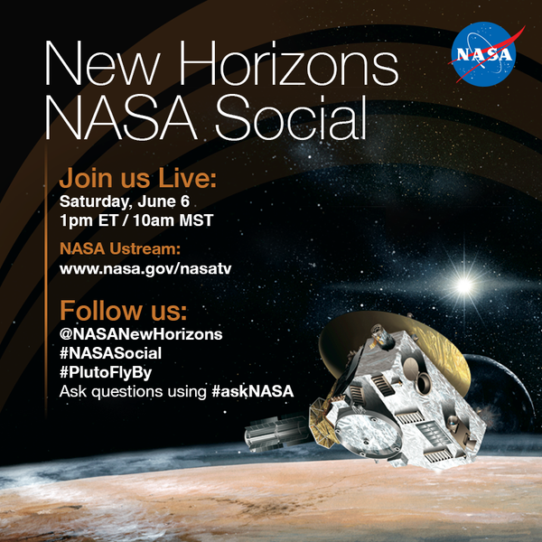 Specifically, tomorrow there are two NASA Socials for the New Horizons mission to Pluto, which will arrive and flyby Pluto on July 14th.