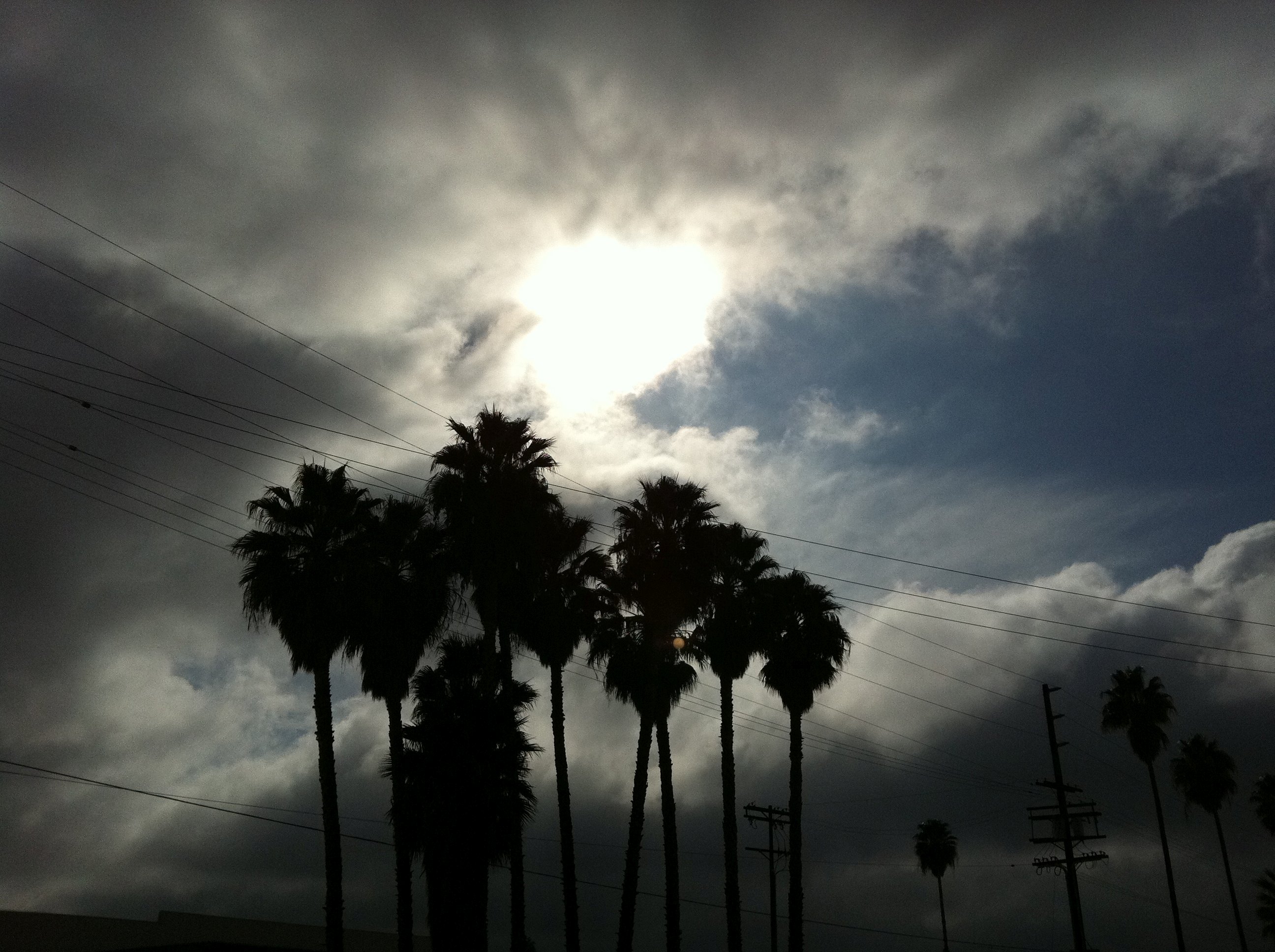 Light! Dark! Silhouettes! Chiaroscuro! Palm Trees! Sun! Blue Sky! Black Clouds!