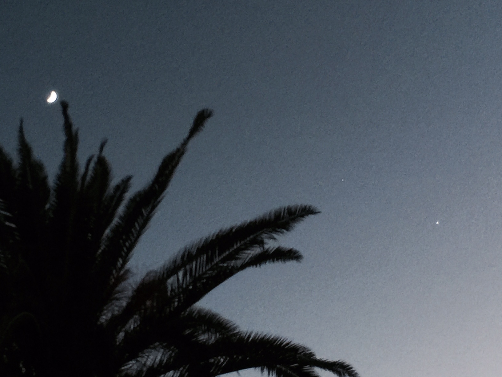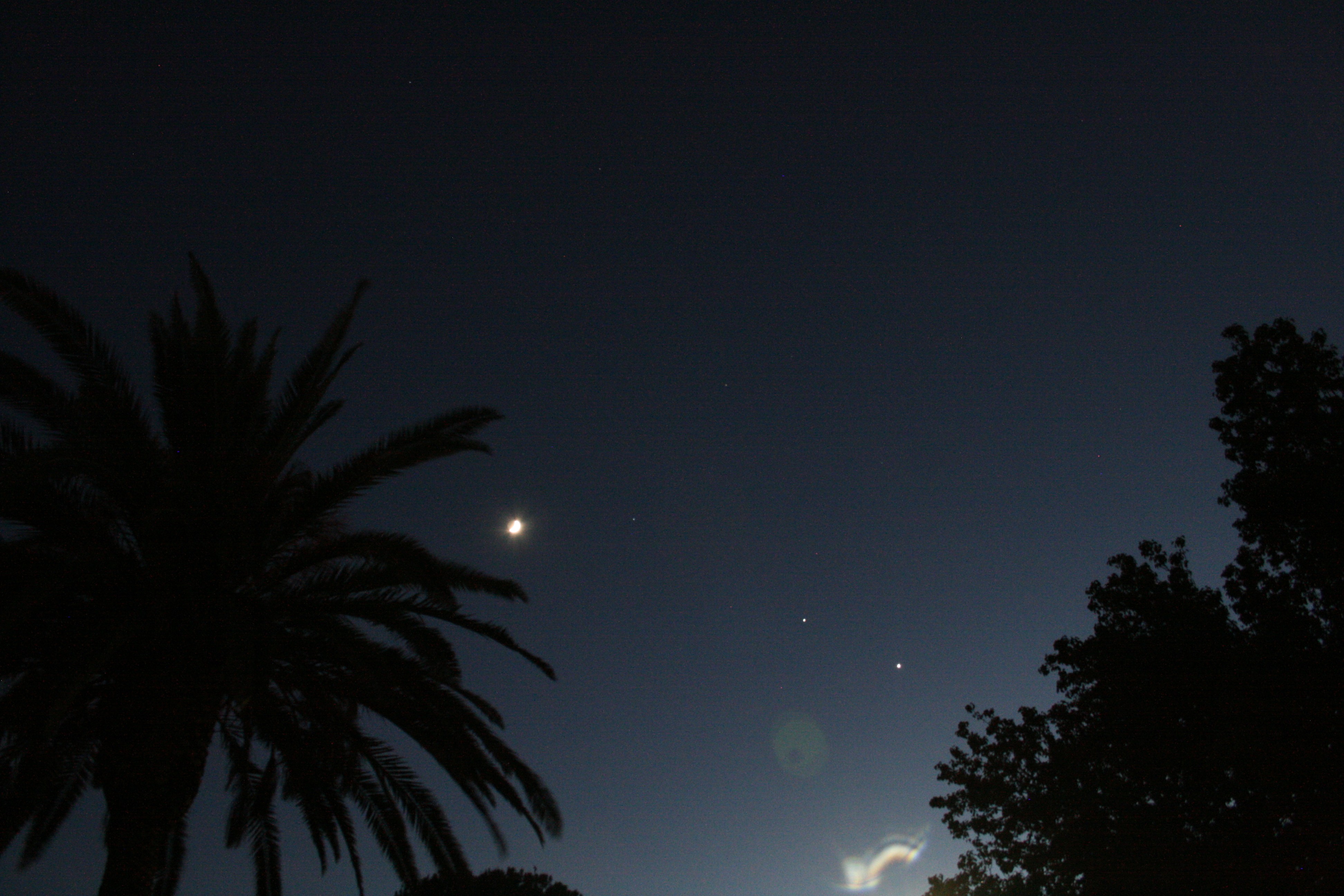 Yesterday the moon was even with Venus and made an approximate isosceles triangle – tonight it’s moved up and out by about 15°.