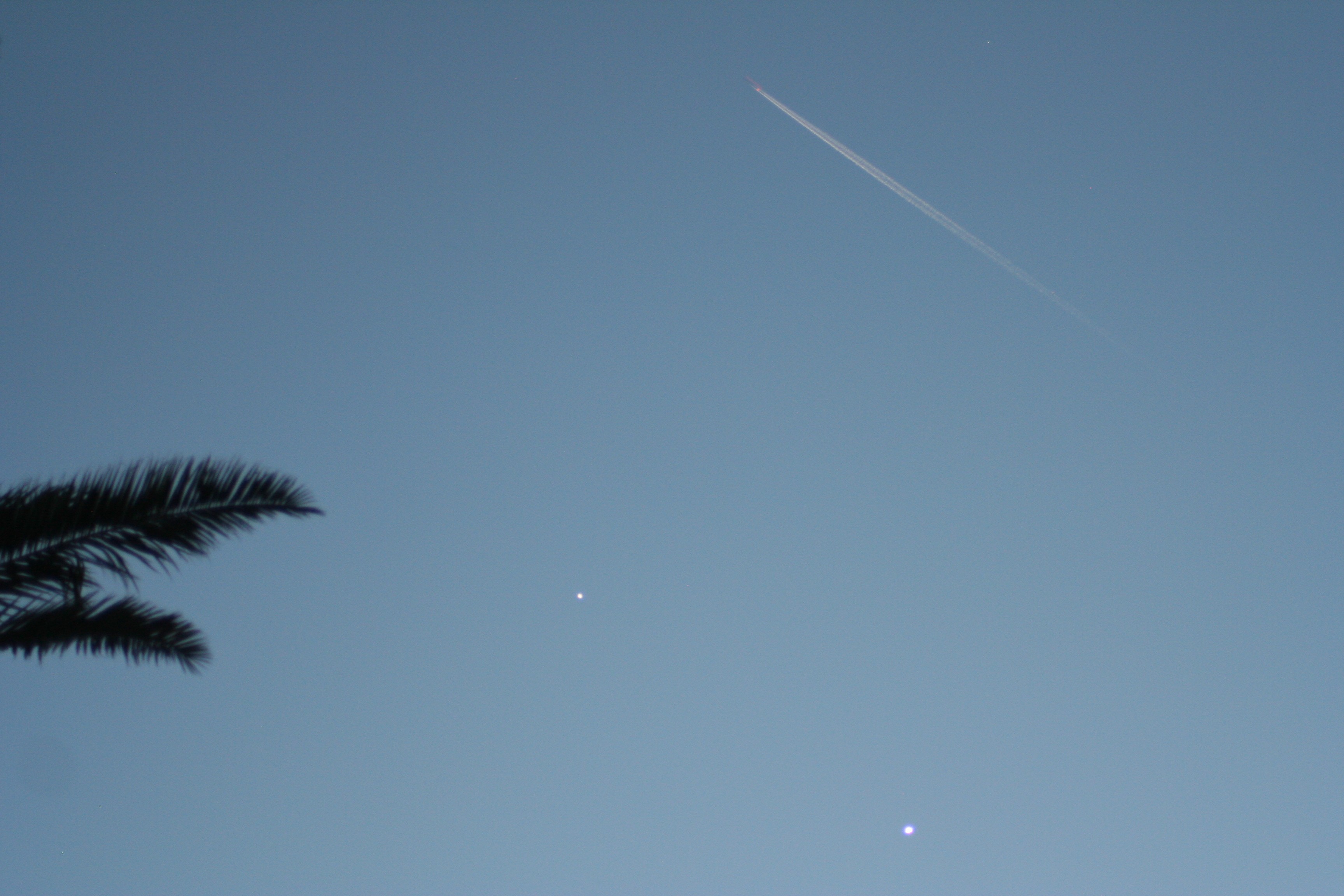 Twilight, and the contrails are out as well.