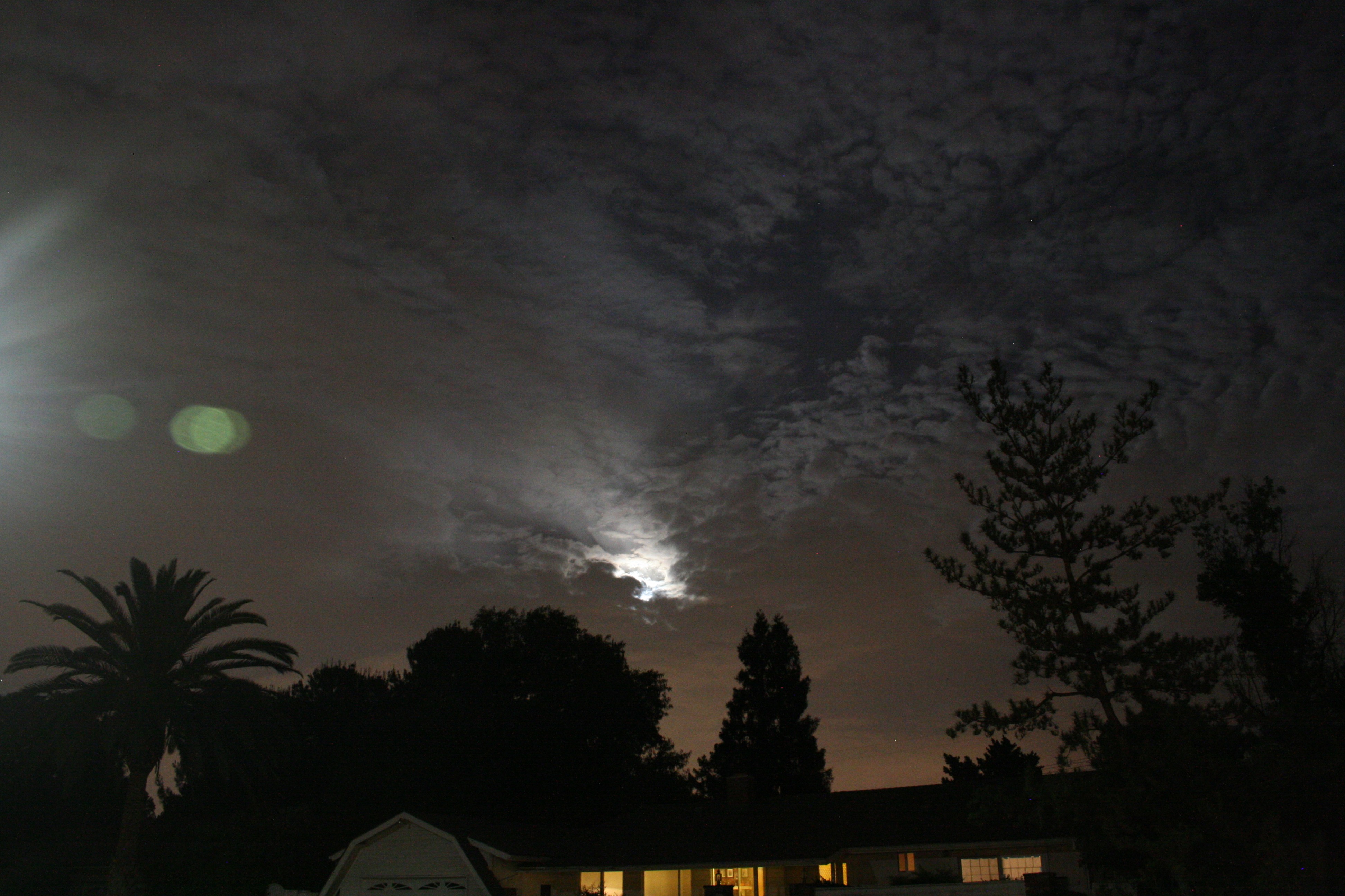 The heavier clouds are coming in from the east, where the almost-full moon is trying to rise. I never actually saw the moon, but the battle between it and the clouds was a thing of beauty. The collateral damage that illuminated the herringbone cloud patterns above were amazing.