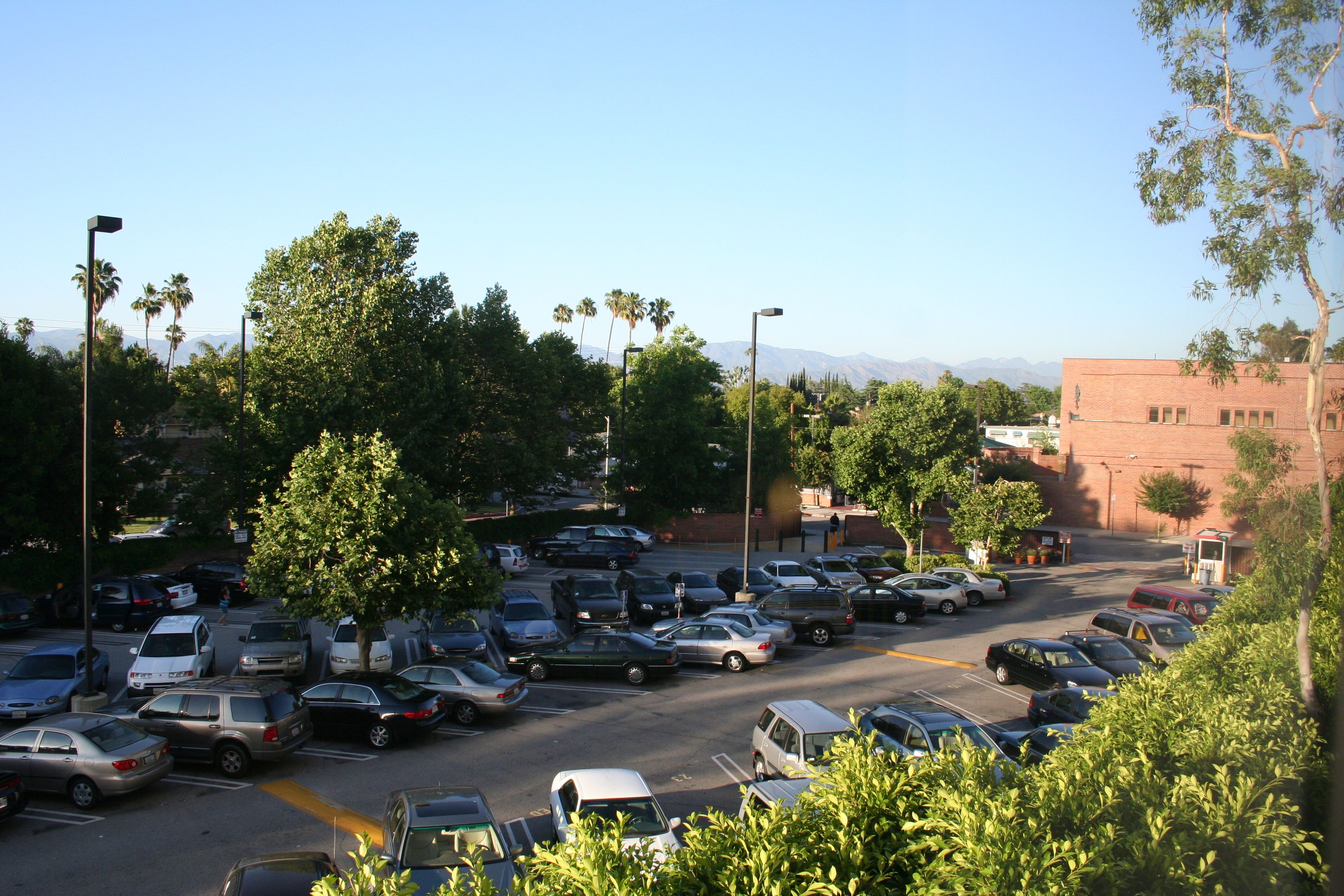 This was the first clear day and you can see the western end of the San Bernardino Mountains off in the distance to the northeast. The parking lot is for the private school that you can see across the street.