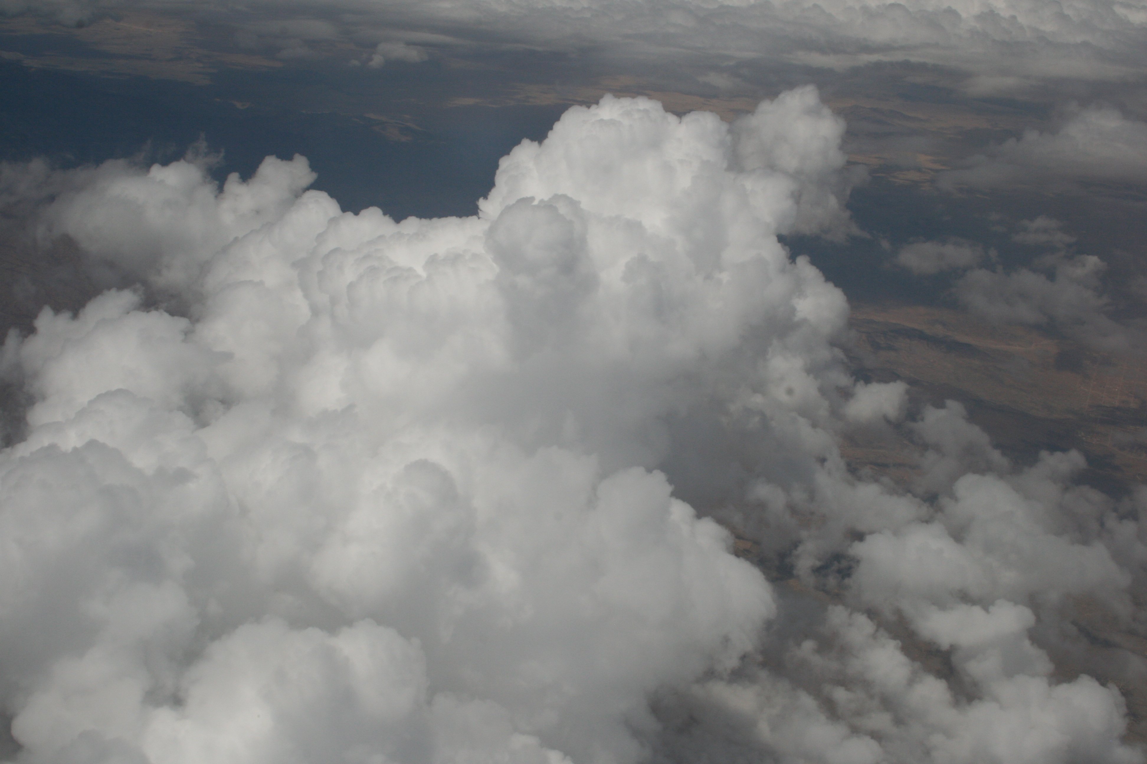 Over New Mexico we were seeing very thin layers of clouds near us, looking almost grey or black in contrast to the white cumulus clouds building in the background.