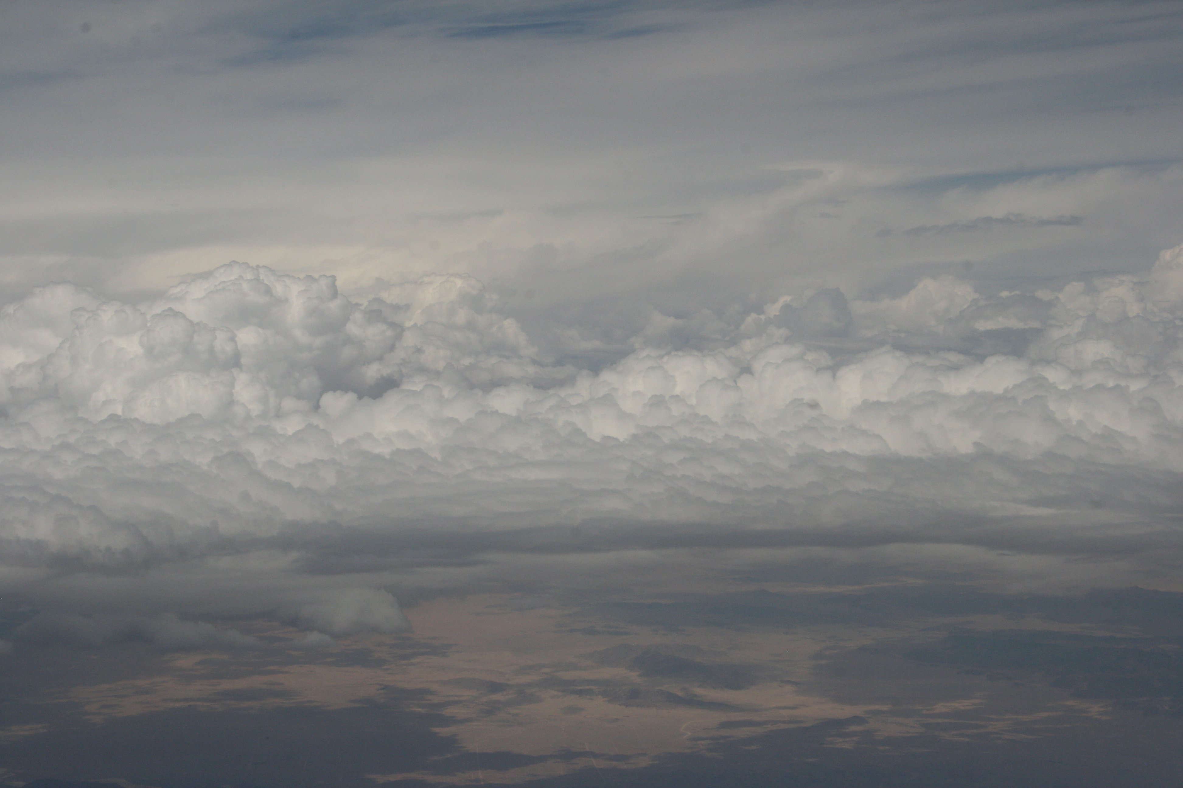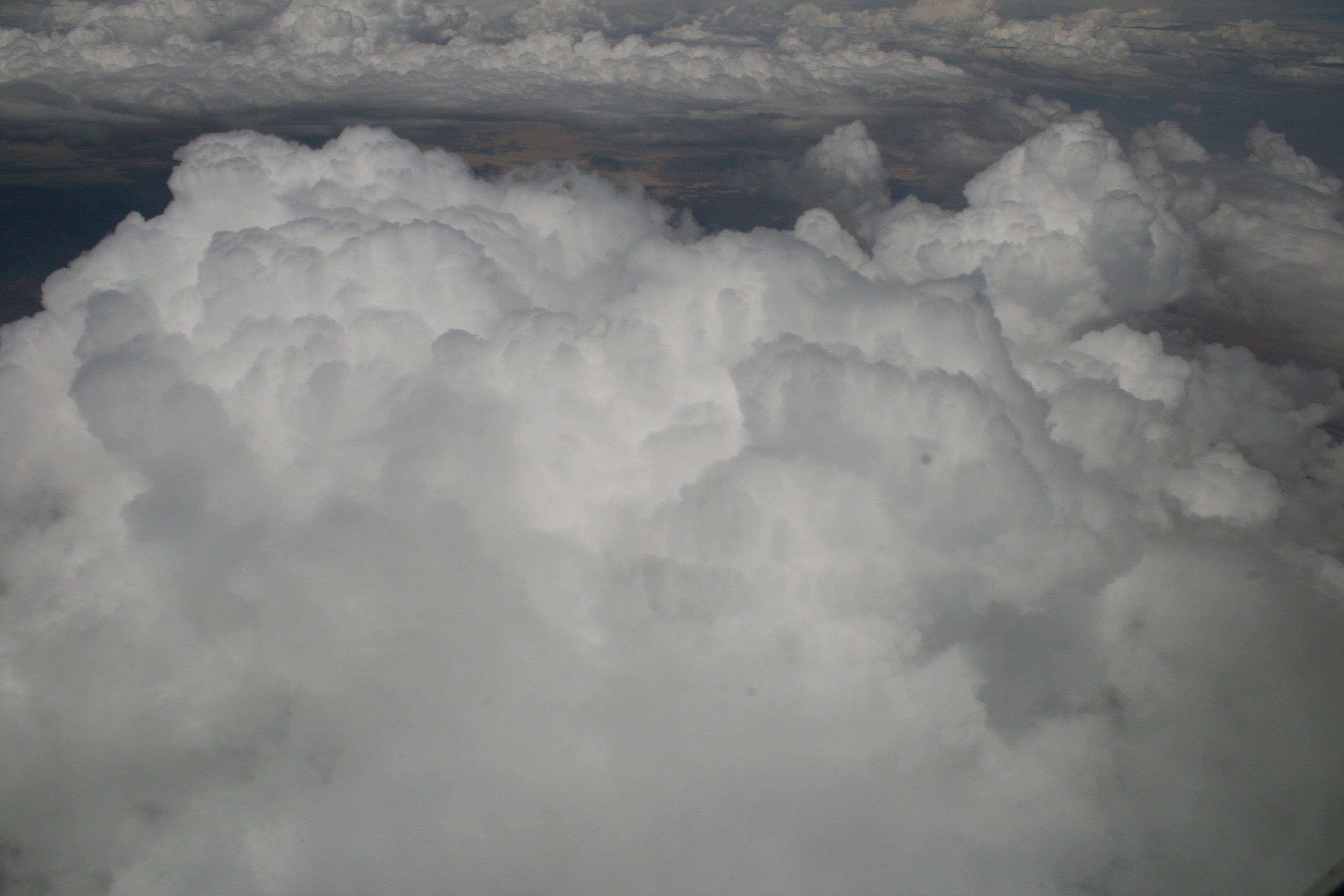 Way off in the distance (probably at least 30-40 miles away at this altitude) there was some convective activity, the humid, unstable air heating and rising, building up thunderstorms.