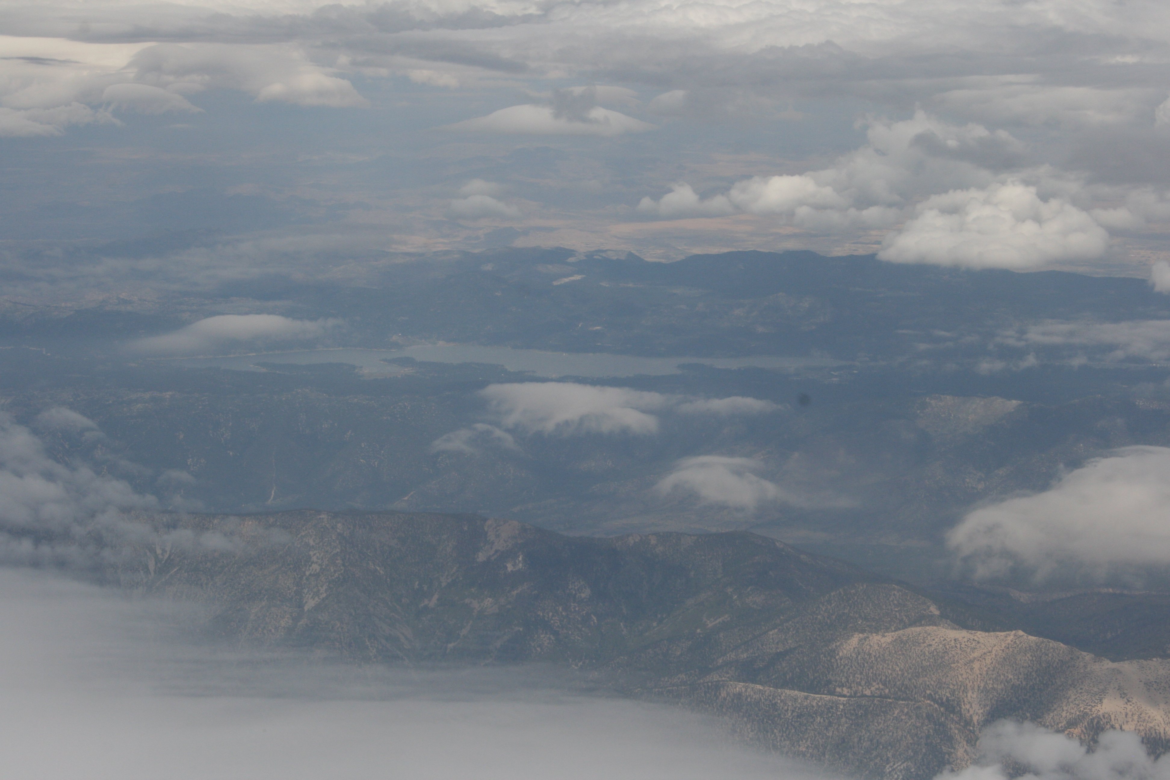 Approaching Los Angeles, the San Bernardino mountains to our north, Lake Arrowhead at 5,174 feet managed to peek through a hole in the clouds.
