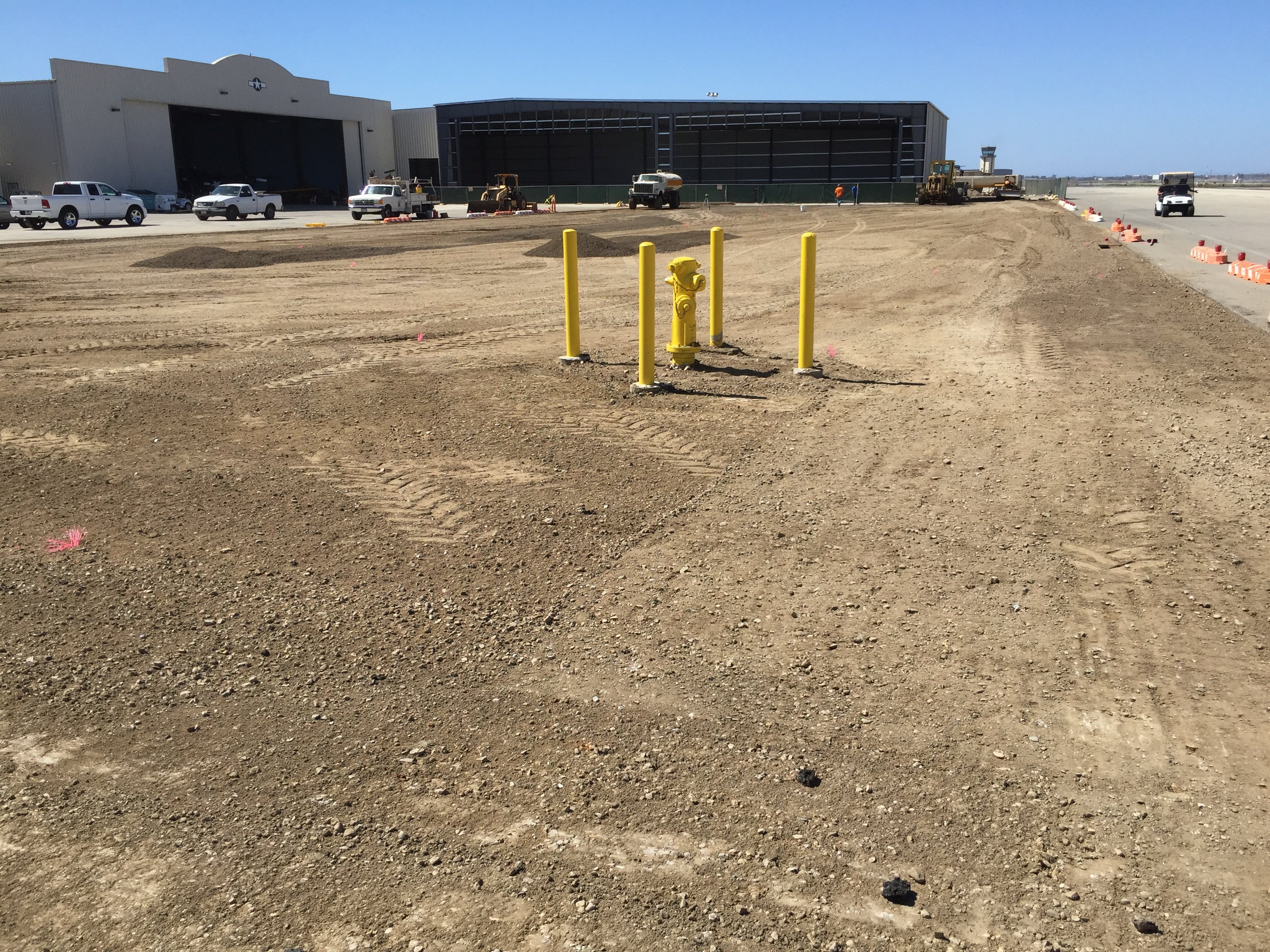 (Click for full-sized image.) Our two existing hangars on the left, 2/3 of the new hangars on the right. (The other third abuts the right-hand, old hangar.)