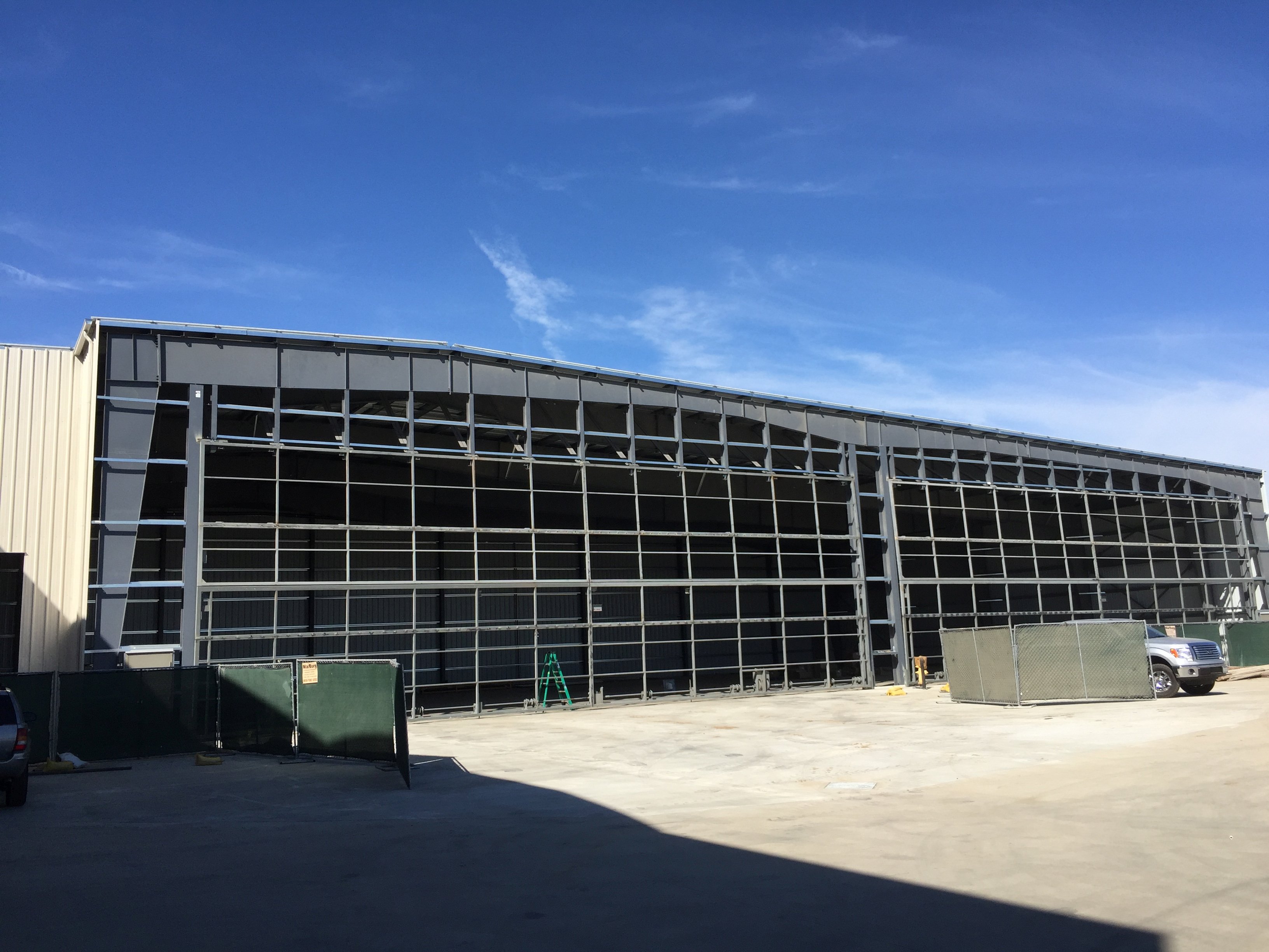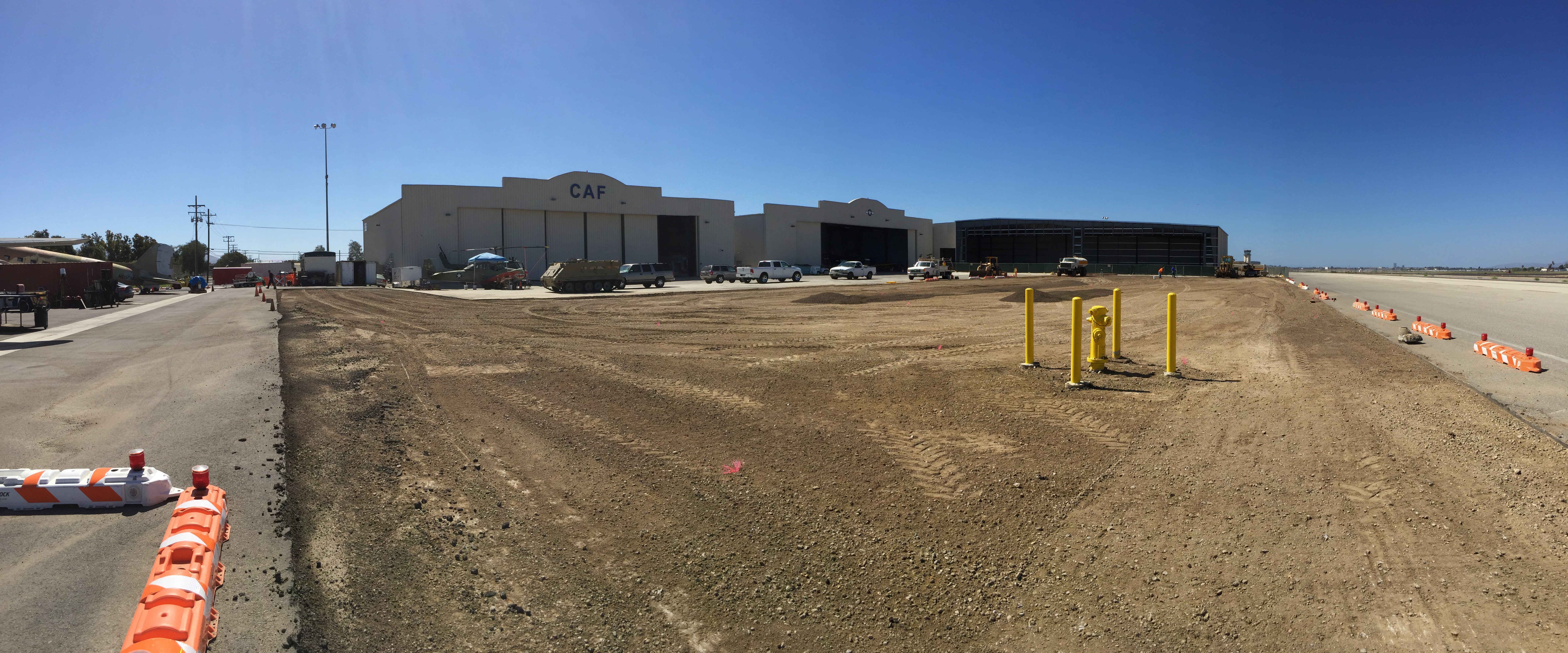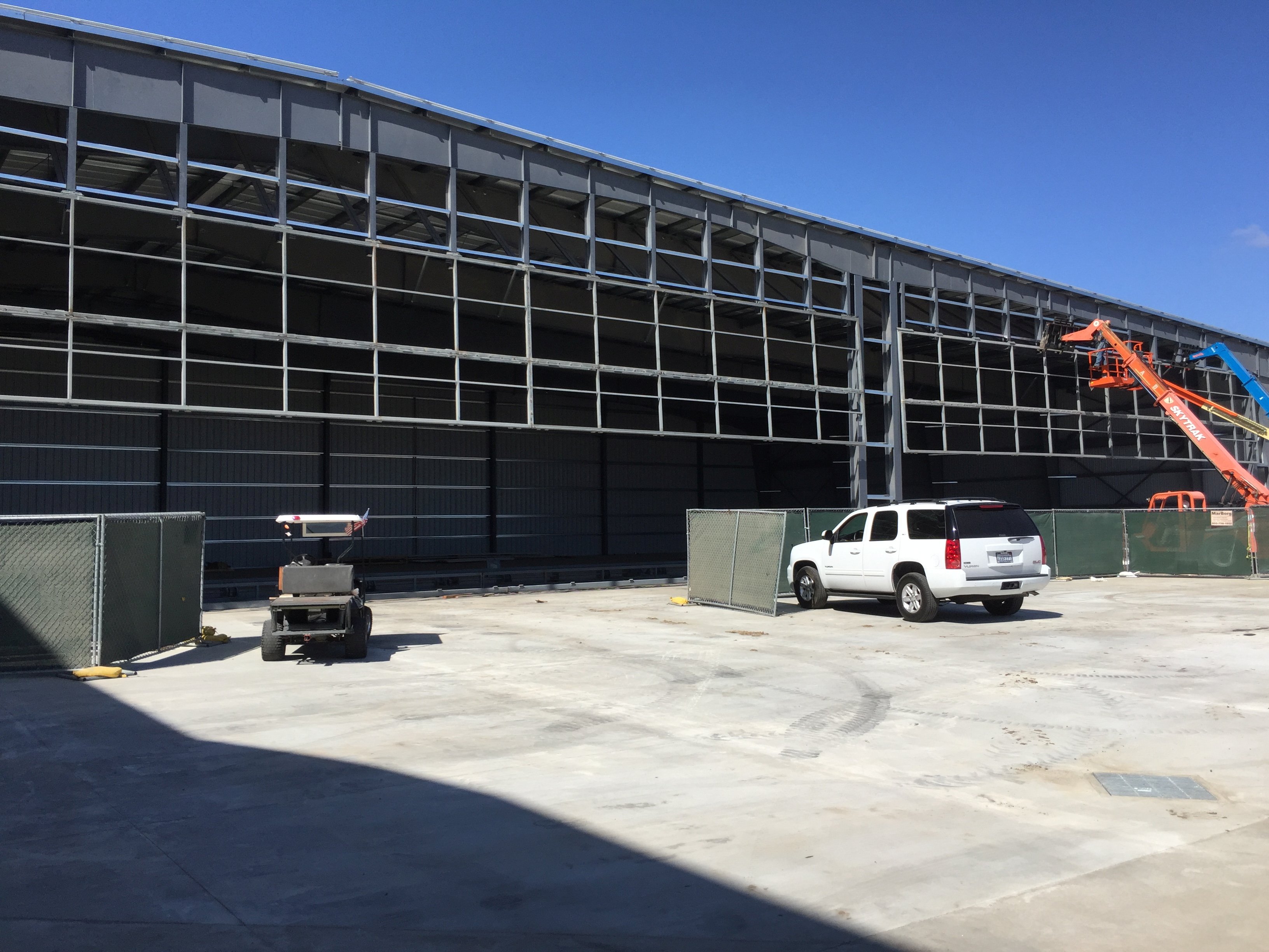 Eight weeks ago we started raising steel for our new hangars at the CAF SoCal location in Camarillo. Six weeks ago the longitudinal beams were up, four weeks ago the roof was on and concrete was ready to pour, three weeks ago the exterior walls were being installed, and two weeks ago interior walls were going up.