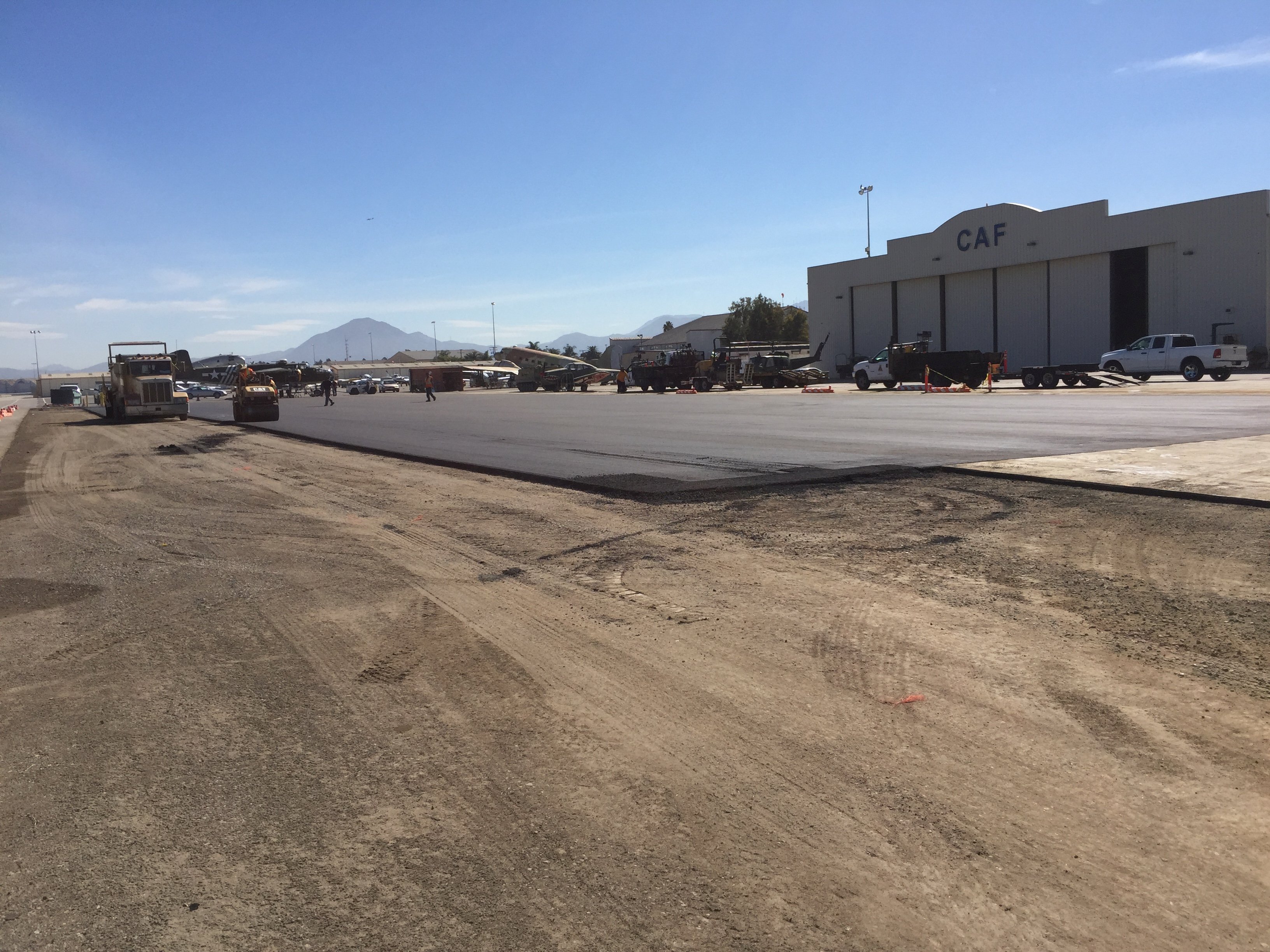 The first huge swaths of new asphalt were going in, which should allow us to move our planes in and out normally again tomorrow.
