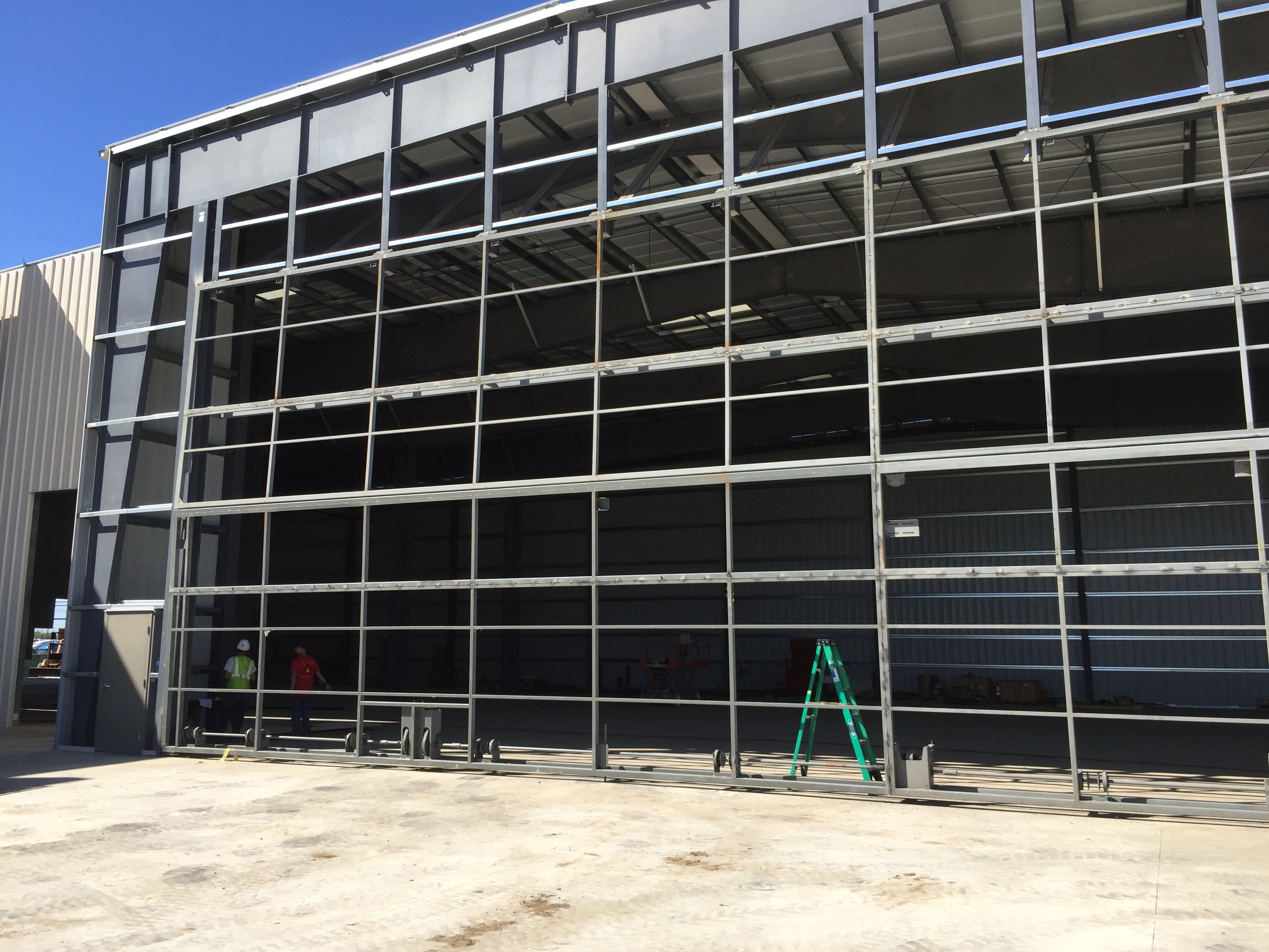 The last big chunks of the hangar exteriors were going up – the huge, folding doors.