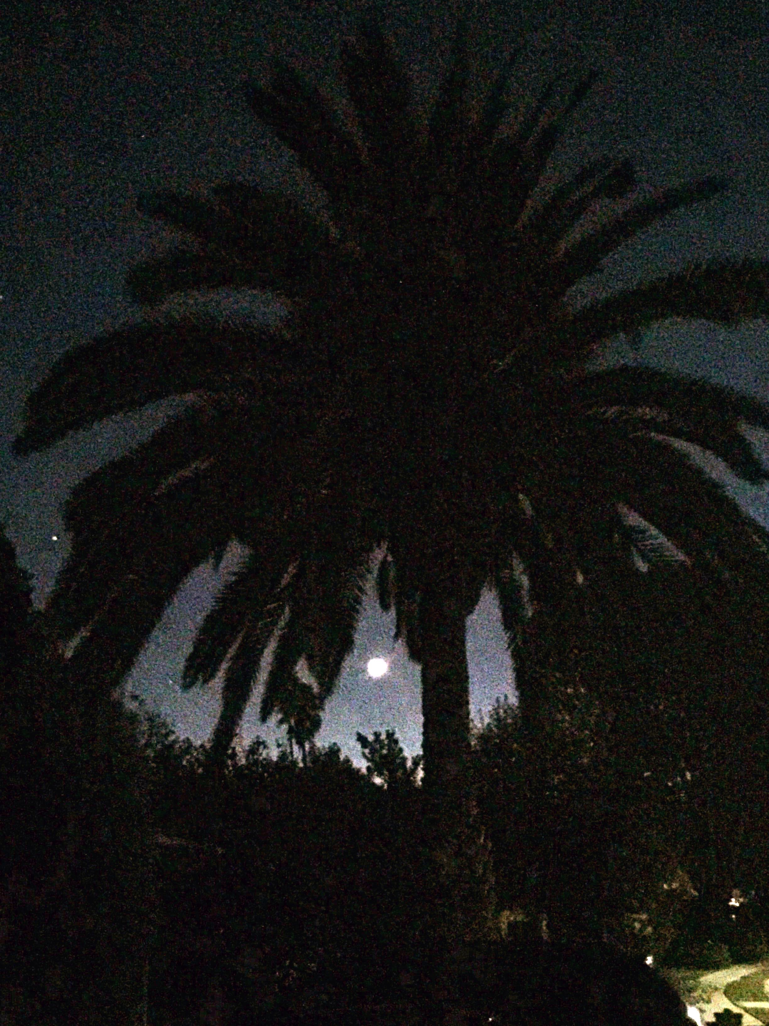 After sunset I was out with The Beast and noticed the three-day-old crescent moon hanging right next to the aforementioned iconic date palm.