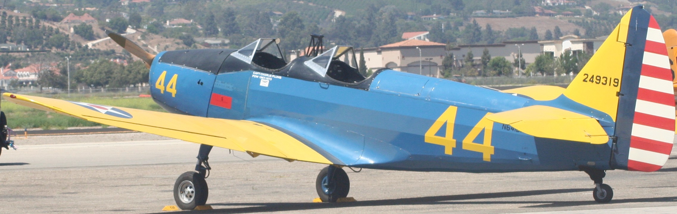 In military aviation terms, a “PT” is a “Primary Trainer.” These are the planes in the late 1930’s and early 1940’s that kids would learn to fly in. Open cockpit, about 200 horsepower, fixed landing gear, nothing too fancy. After they mastered the PT they would move up to an SNJ or Texan or Harvard, depending on the branch of service. (They’re pretty much all the same plane.) If you didn’t wash out there, you got to go fly fighters.