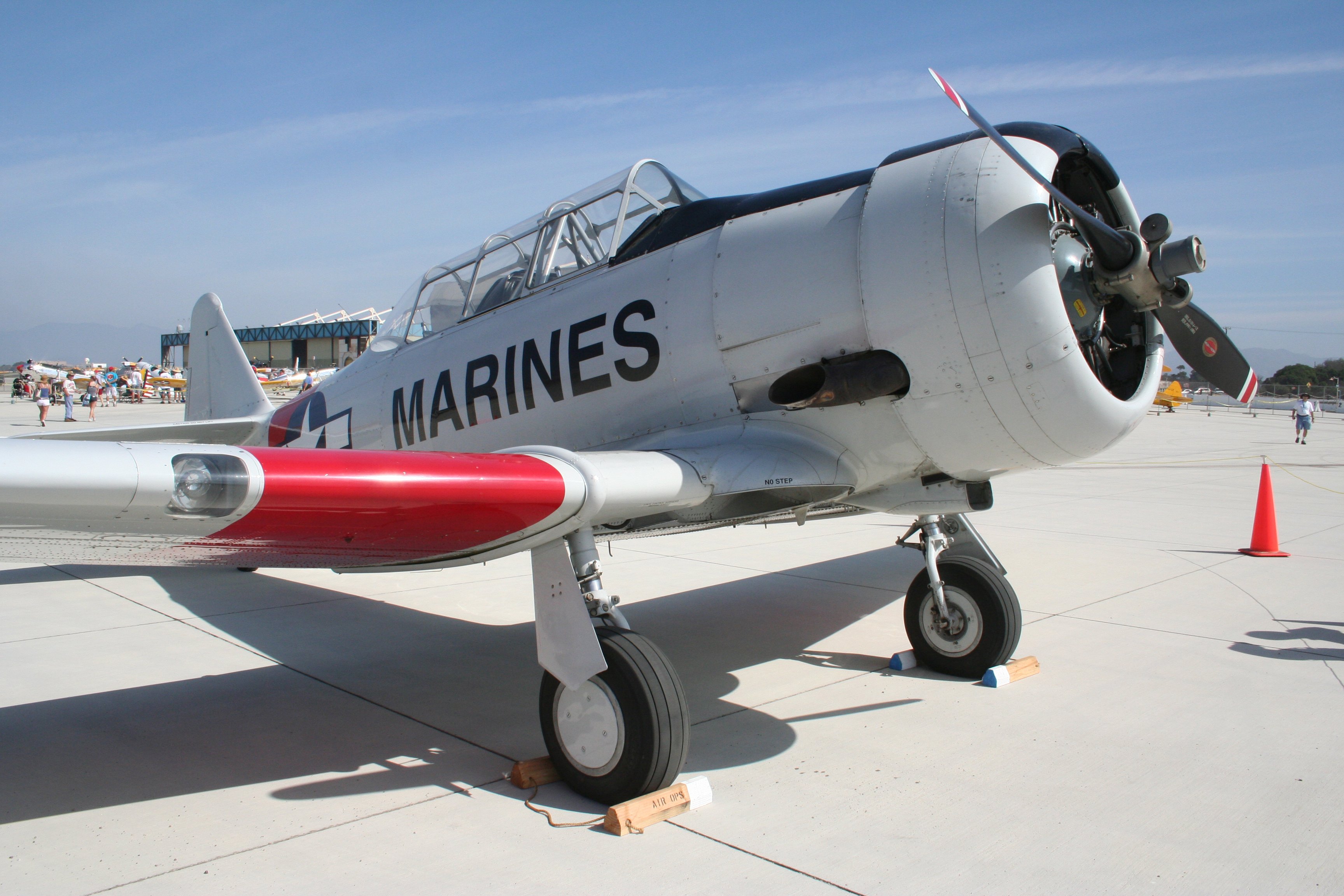 Finally, another SNJ trainer. As with the Army B-25 and Navy PBY, for trainers the Army had Texans, the Navy has SNJs, and the British had Harvards. Texan = SNJ = Harvard.