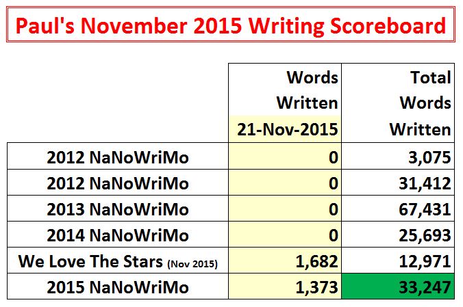 While I normally put in a lot of internal links to previous, related posts here, I won’t be doing that for what I hope will be this year’s thirty NaNoWriMo posts. If you have jumped into or stumbled onto this story in mid-adventure, there are plenty of other ways to navigate around the site to find previous installments. Actually doing so is left as an exercise to the student.