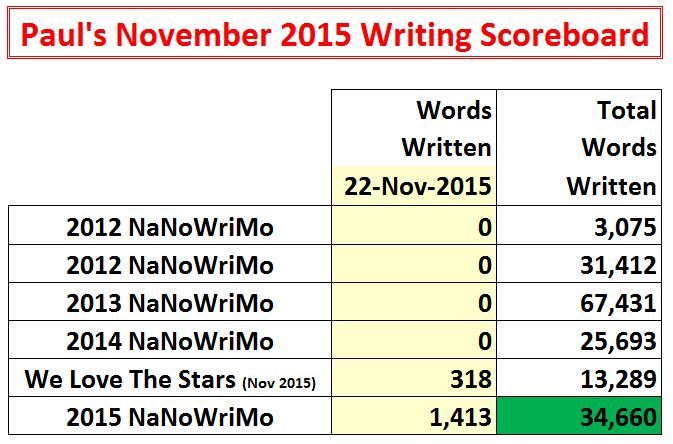 While I normally put in a lot of internal links to previous, related posts here, I won’t be doing that for what I hope will be this year’s thirty NaNoWriMo posts. If you have jumped into or stumbled onto this story in mid-adventure, there are plenty of other ways to navigate around the site to find previous installments. Actually doing so is left as an exercise to the student.