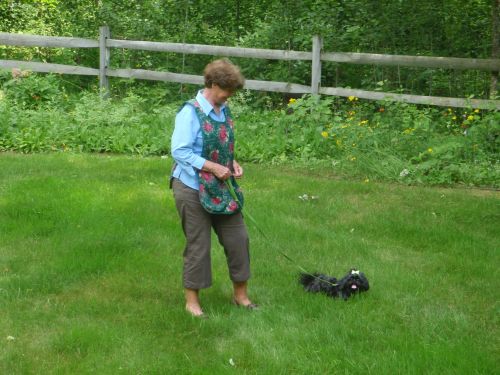 Mom and Lucy in her backyard in Vermont