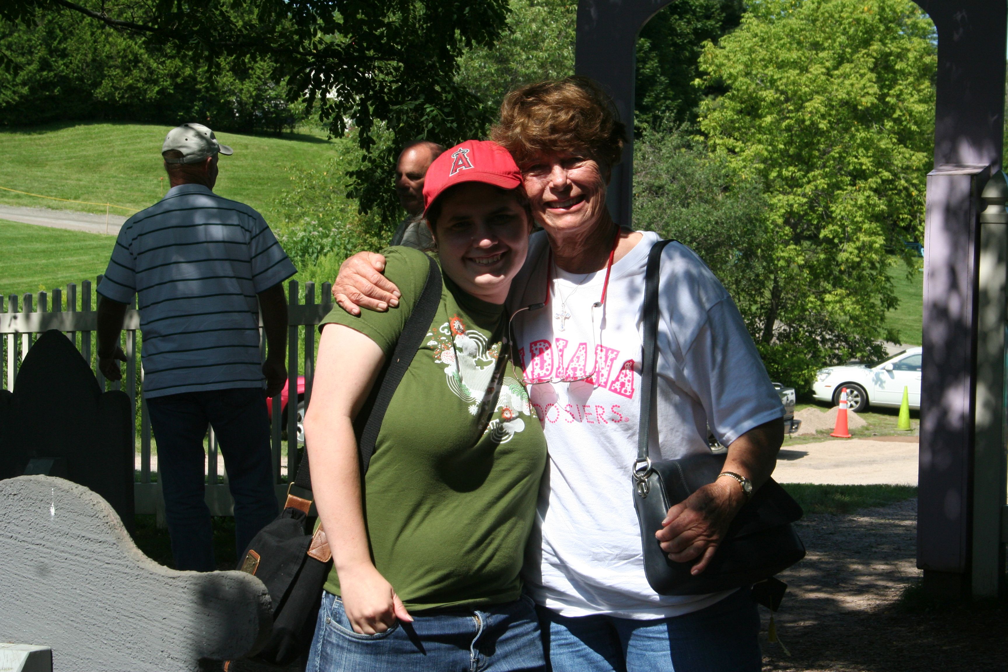 Mom and Lucy in her backyard in Vermont