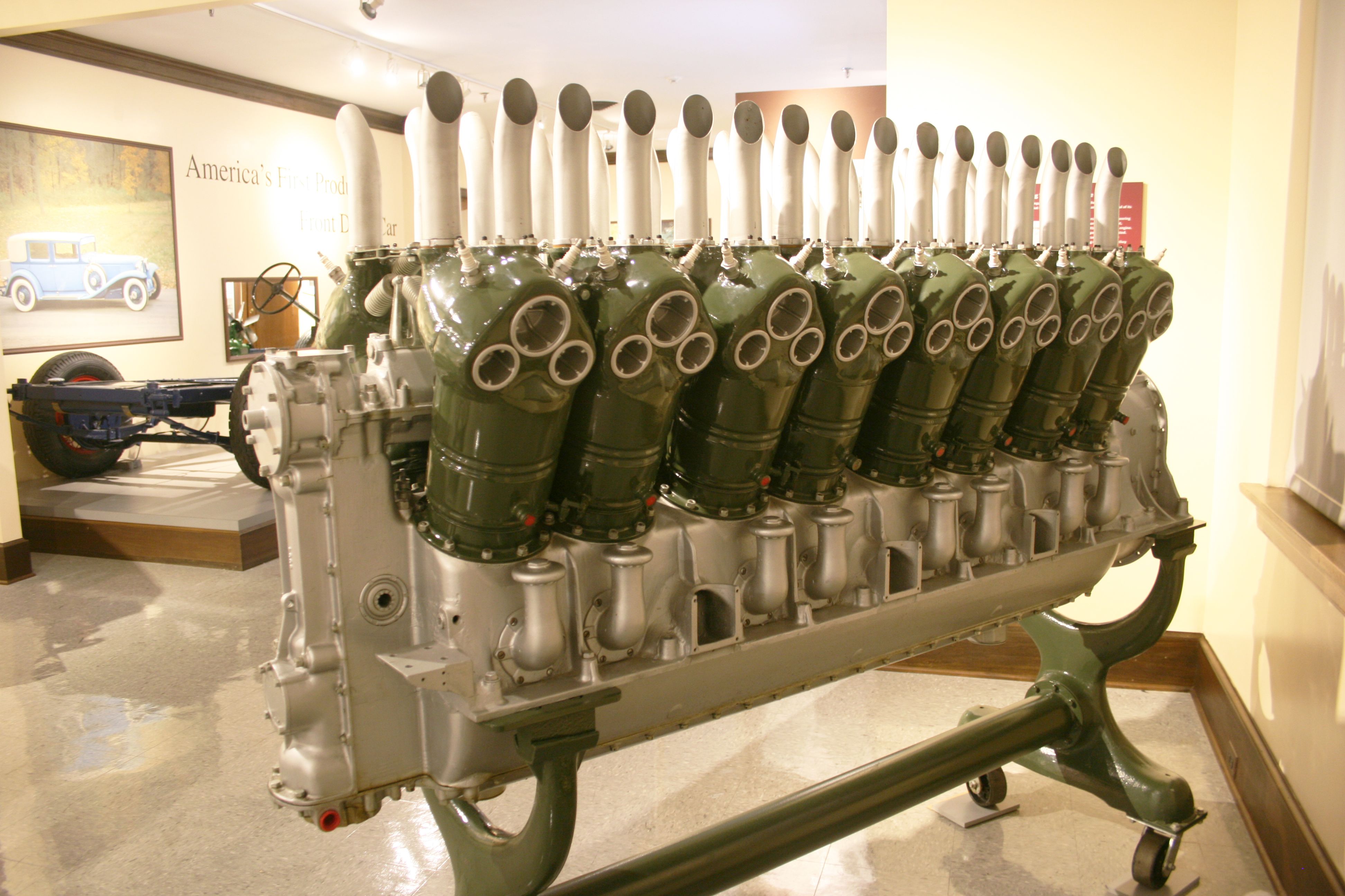 Duesenberg also tried to get into the aircraft engine field in 1918 (only fifteen years after the Wright Brothers flew!) with this V-16 engine. It never took off, too heavy for the flimsy aircraft of the day.