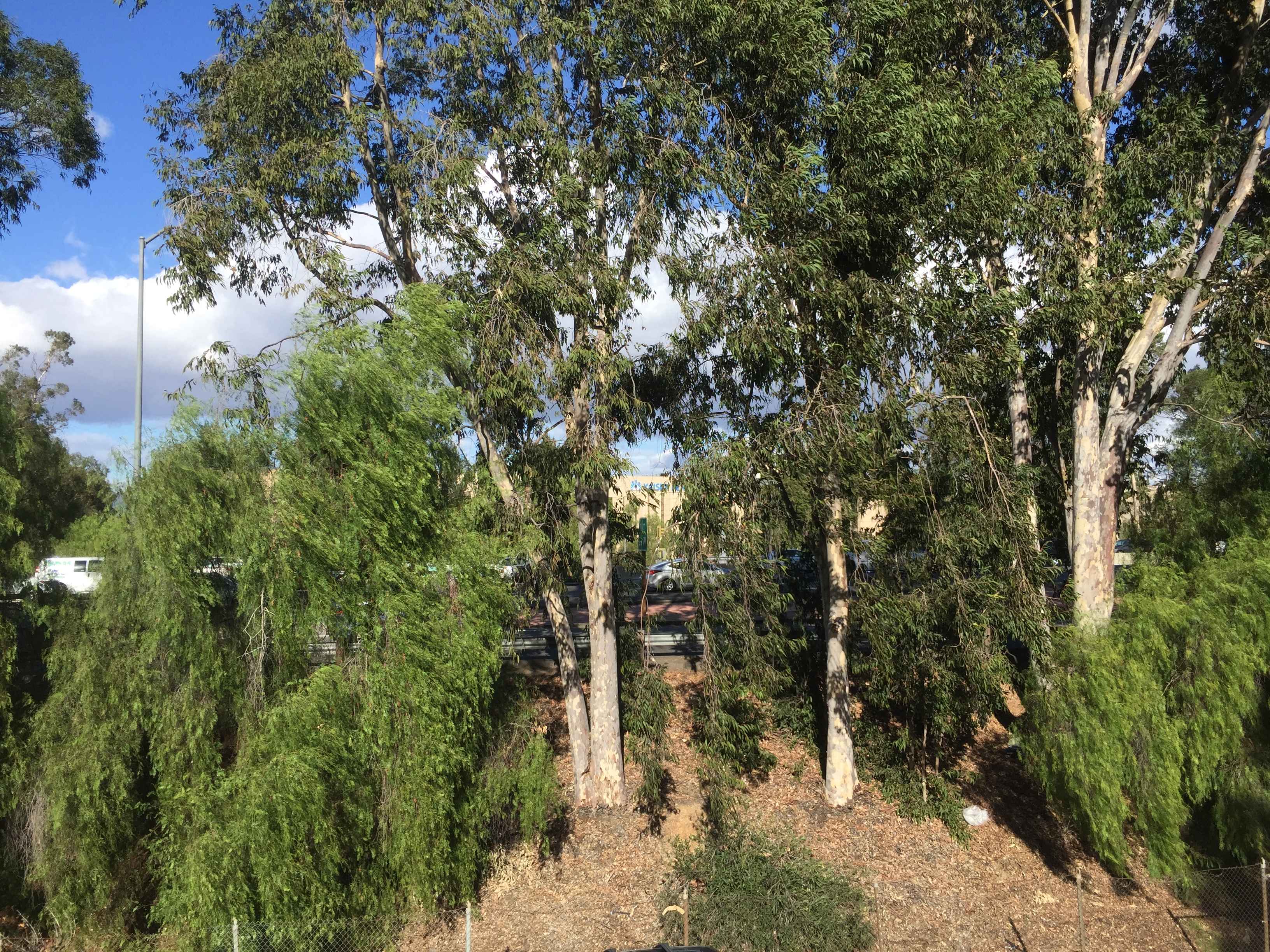 At night, the big, illuminated sign on the KP hospital stands out like a beacon. During the day, the eucalyptus trees dominate the scene. If you didn’t know there was a big hospital over there, you probably wouldn’t notice it from this angle.
