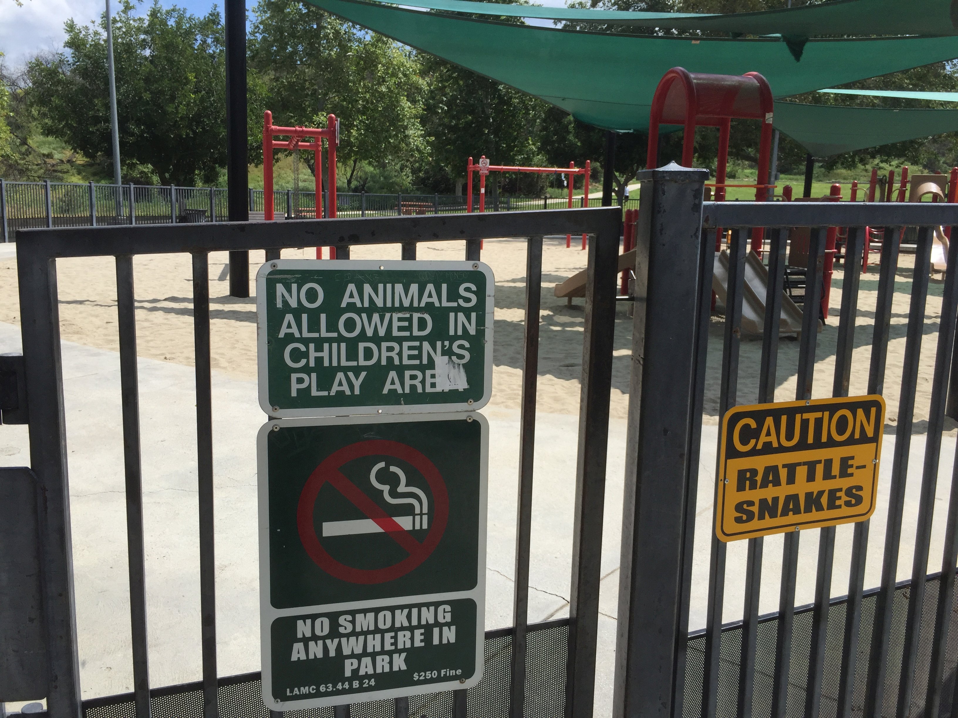 I also know that it’s a park that’s got some large wilderness areas starting not too far away. It’s actually a trailhead for a fair-to-middlin’ trail that heads up into the Santa Monica Mountains. So yeah, it’s not completely unlikely that there might be snakes.