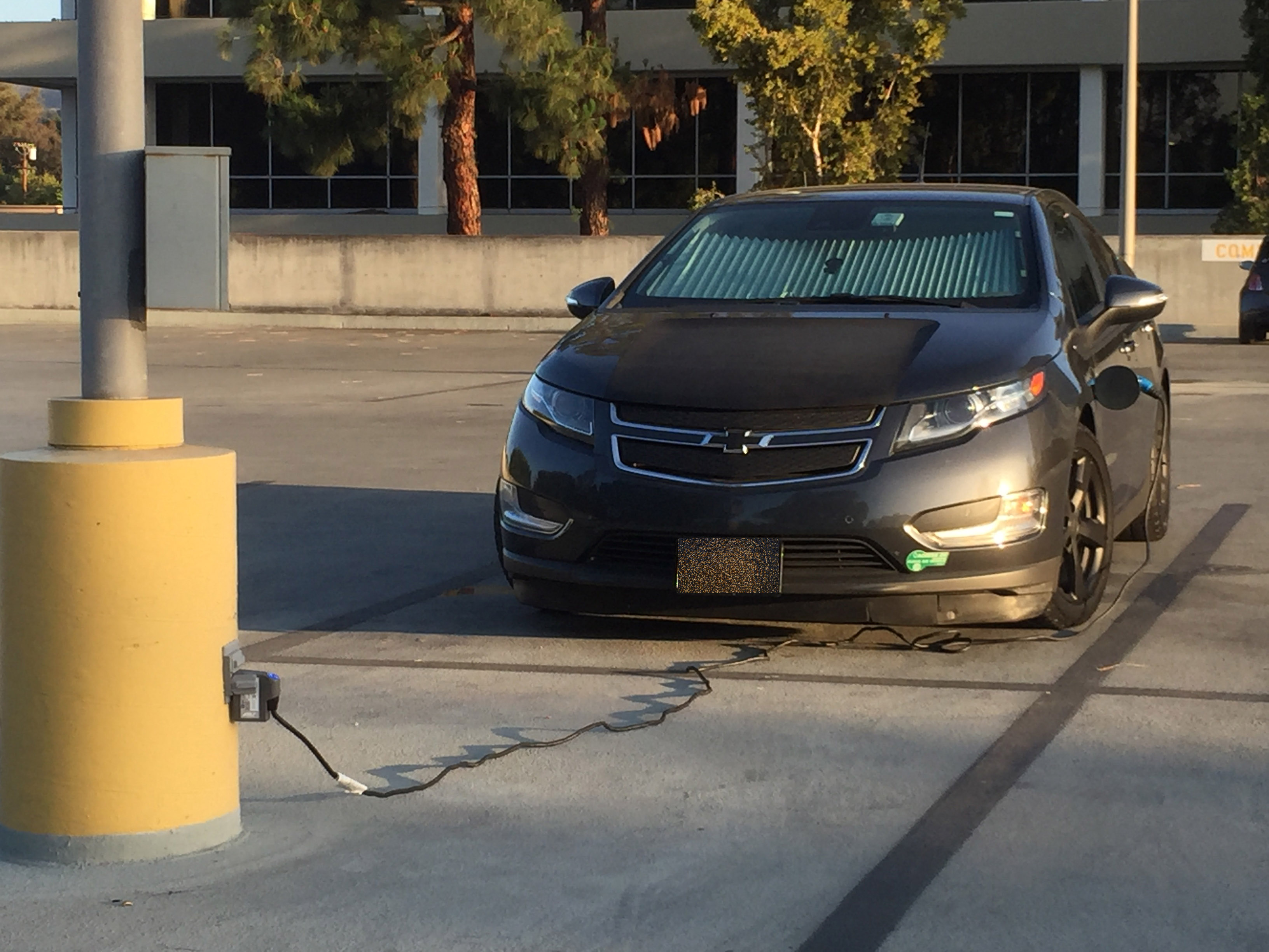 Or maybe that’s the problem on display here. They couldn’t get one of those spots all day, so they have to wait until the lot empties out a bit at the end of the day, move their car so it can charge, and then hang out until they’ve got enough juice to get home?