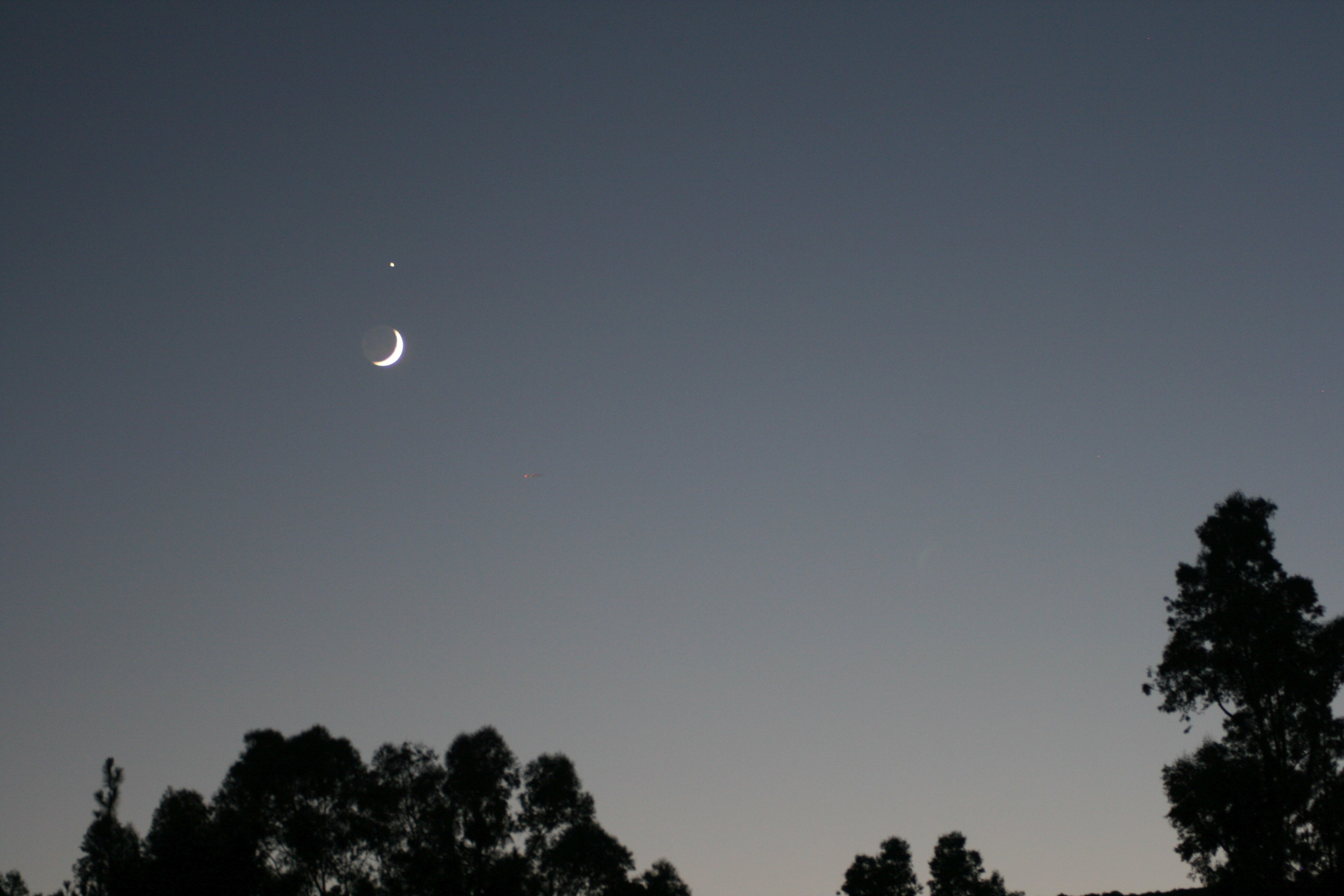 The moon, as expected, had moved higher in the sky, away from Mercury, and was now near bright Jupiter.