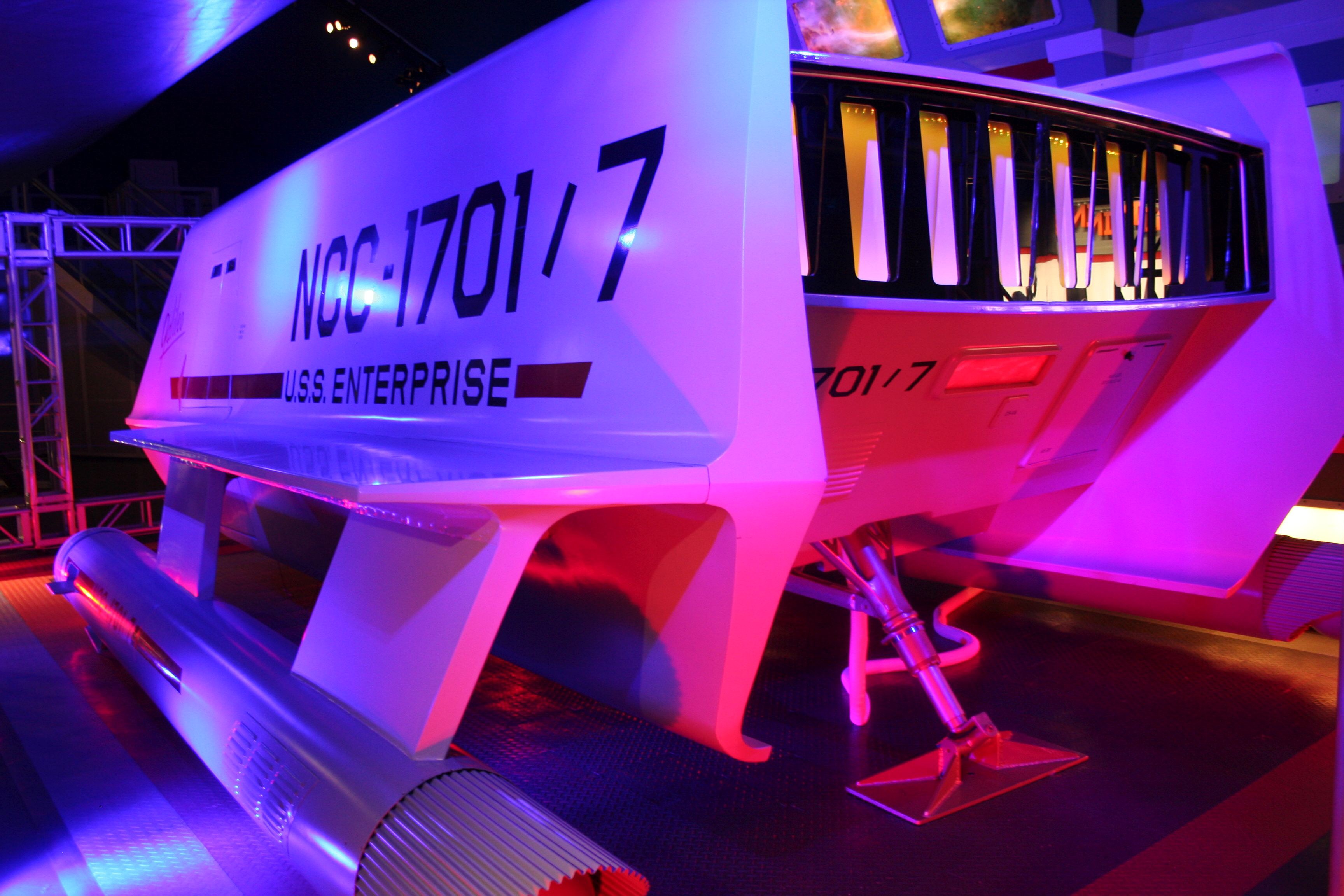 Of course, Enterprise got her name after all of the Star Trek fans campaigned for that name. Underneath her in the museum is a model of the Galileo shuttlecraft model used in the original Star Trek television series.