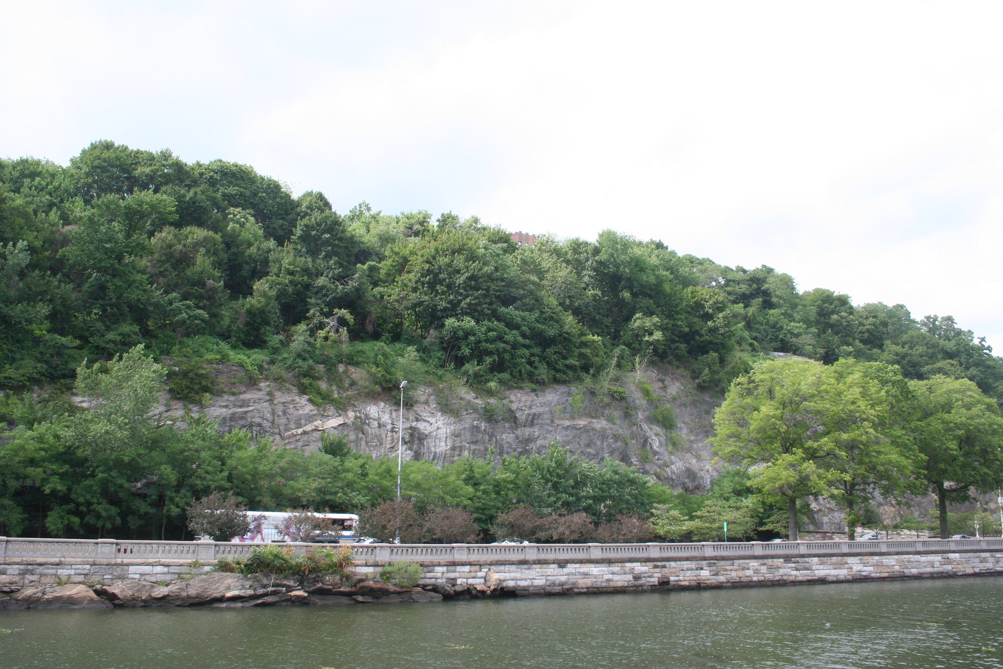 Along the northern section of the Harlem River the scenery changes rather significantly, at least the view from the river on the starboard side of the boat. The banks rise with steep cliffs and everything’s covered in forest.