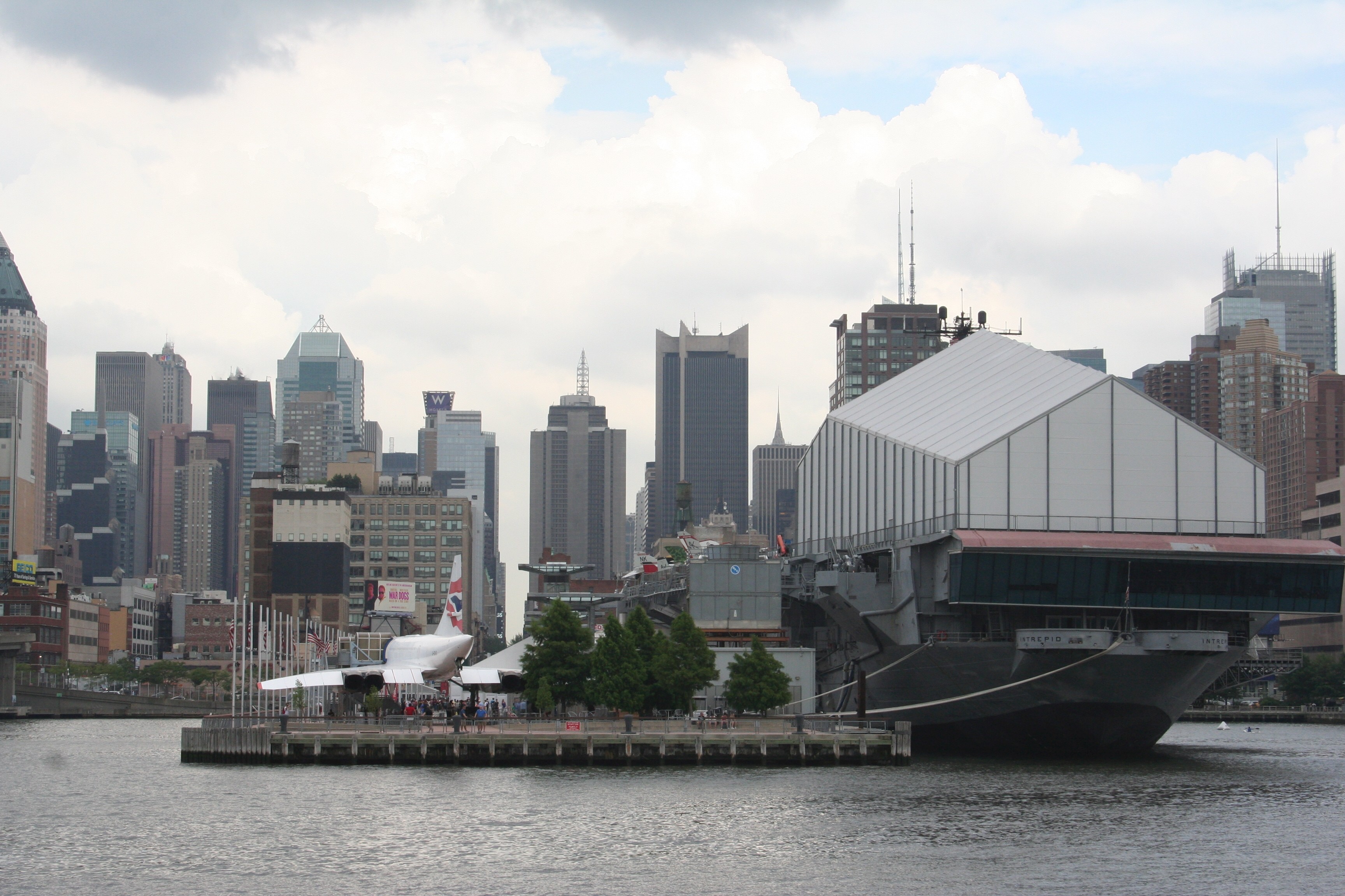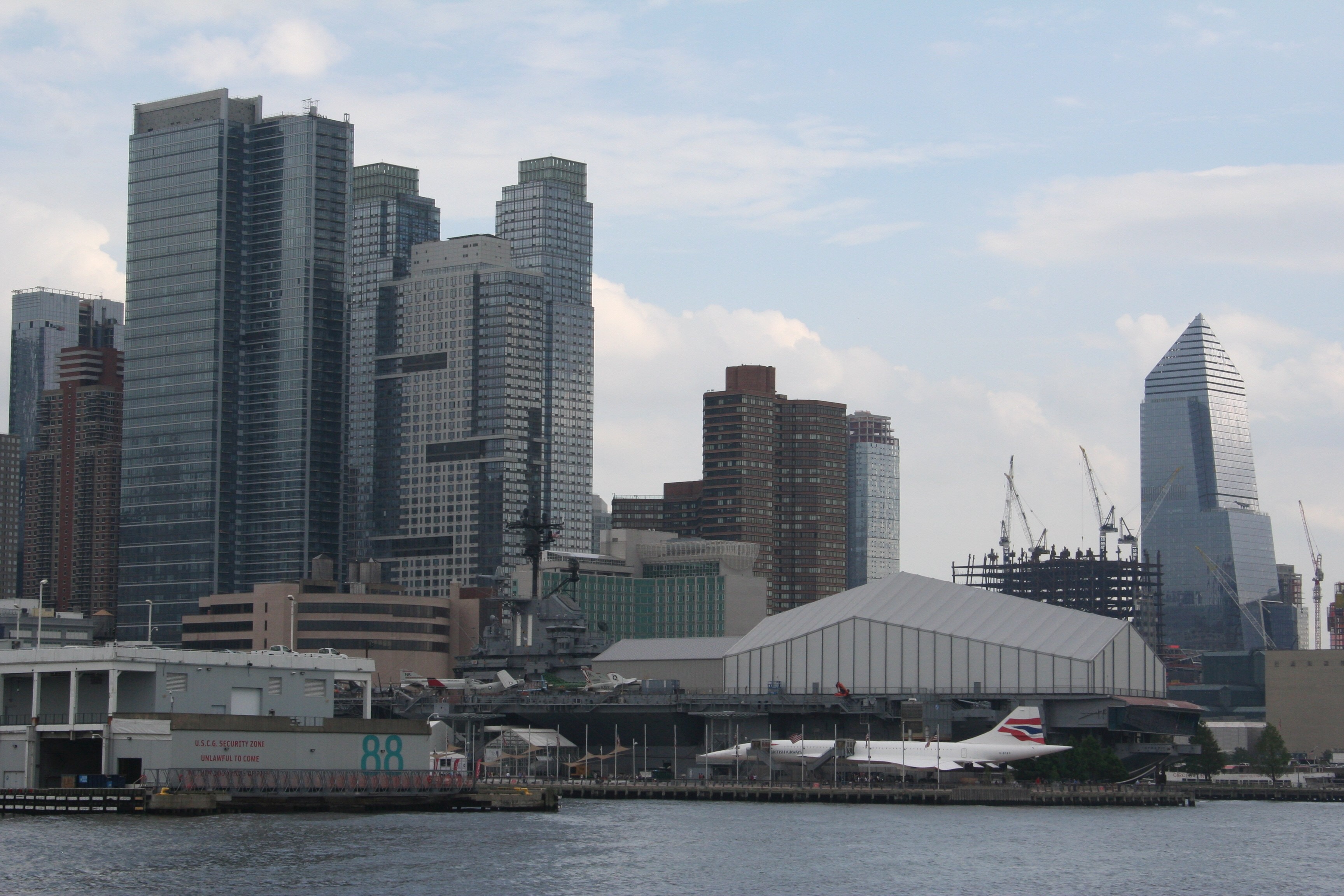 Almost home! There’s the Intrepid, with the Concorde on display on the dock next to it and the angular grey building that contains the Space Shuttle Enterprise.