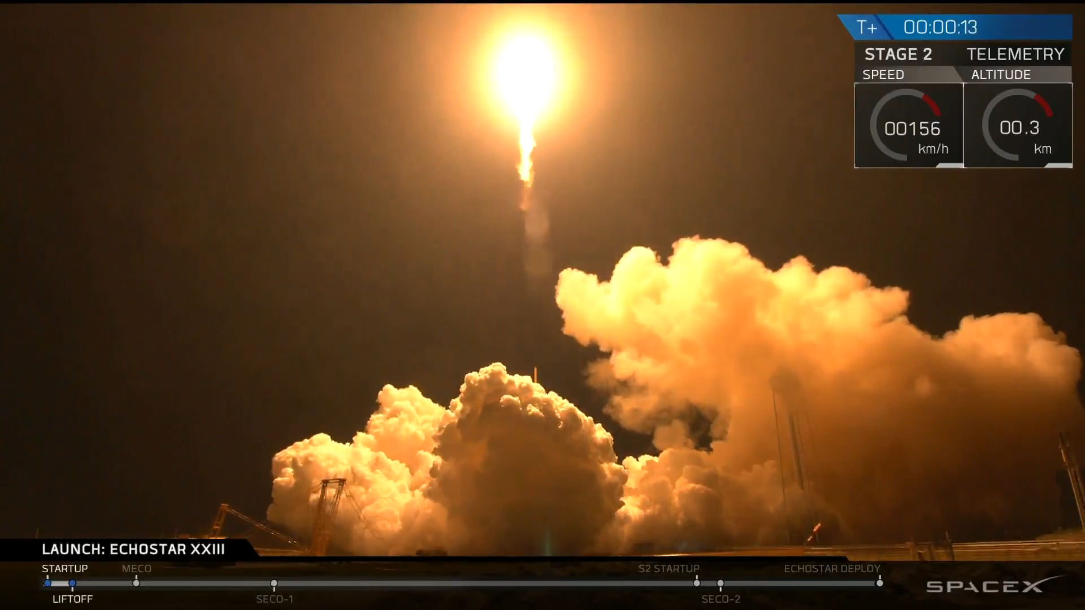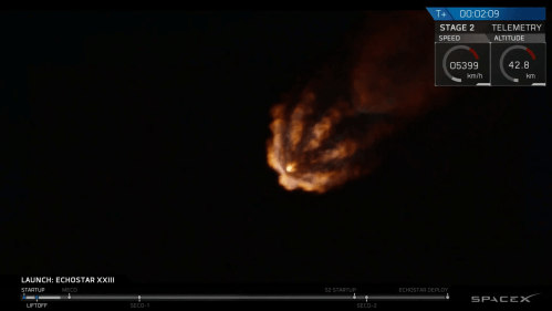 And EchoStar 23 is on its way to an orbit over Brazil. Congratulations to SpaceX on another outstanding and successful launch!