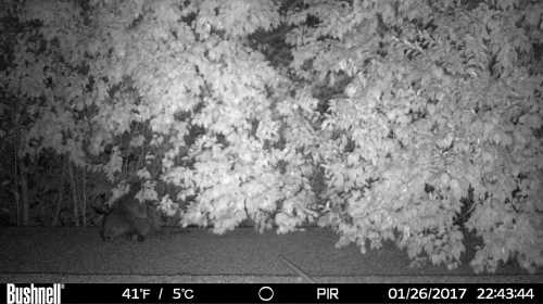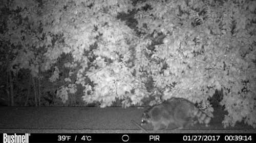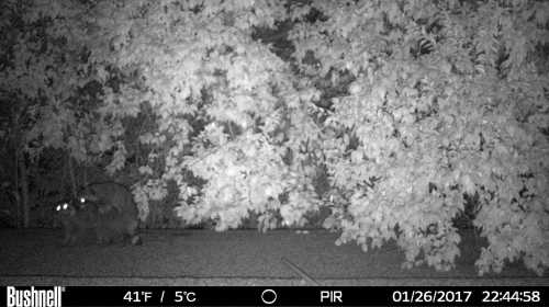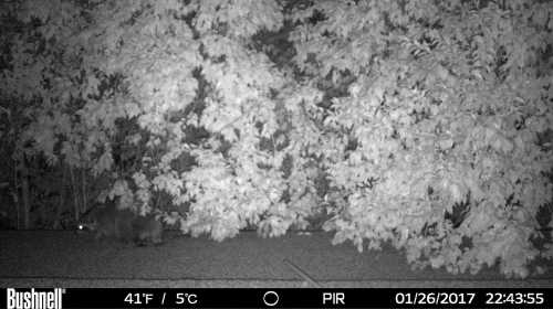 Tonight as they’re trotting around up there I know there are at least four. I haven’t stuck my head up there (not a particularly good time to be climbing in the dark, especially to invade the territory of some potentially pissed off critters) but at least twice I’ve heard them quite clearly walking by in single file (to hide their numbers, no doubt) and it’s not that hard to tell.
