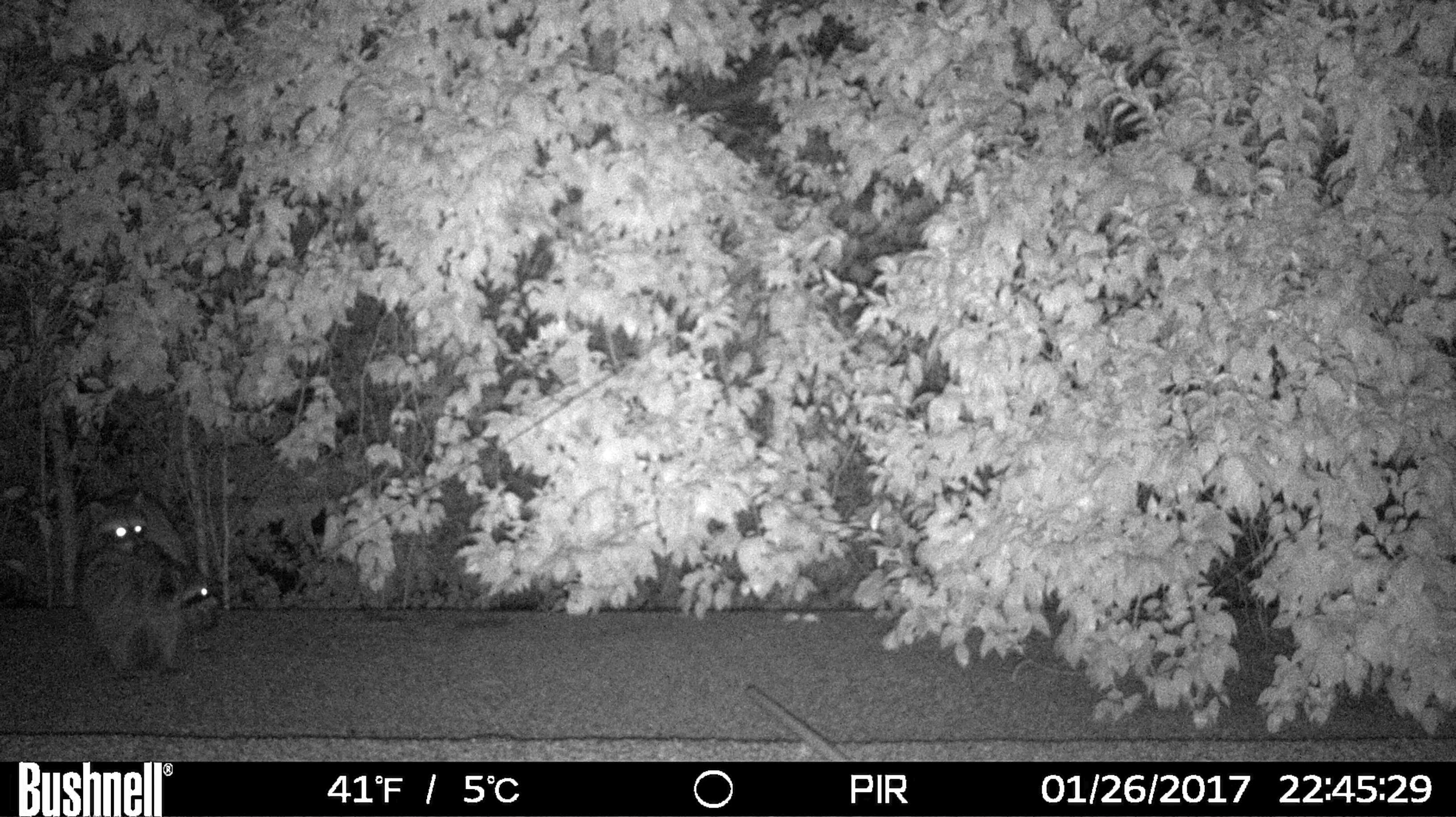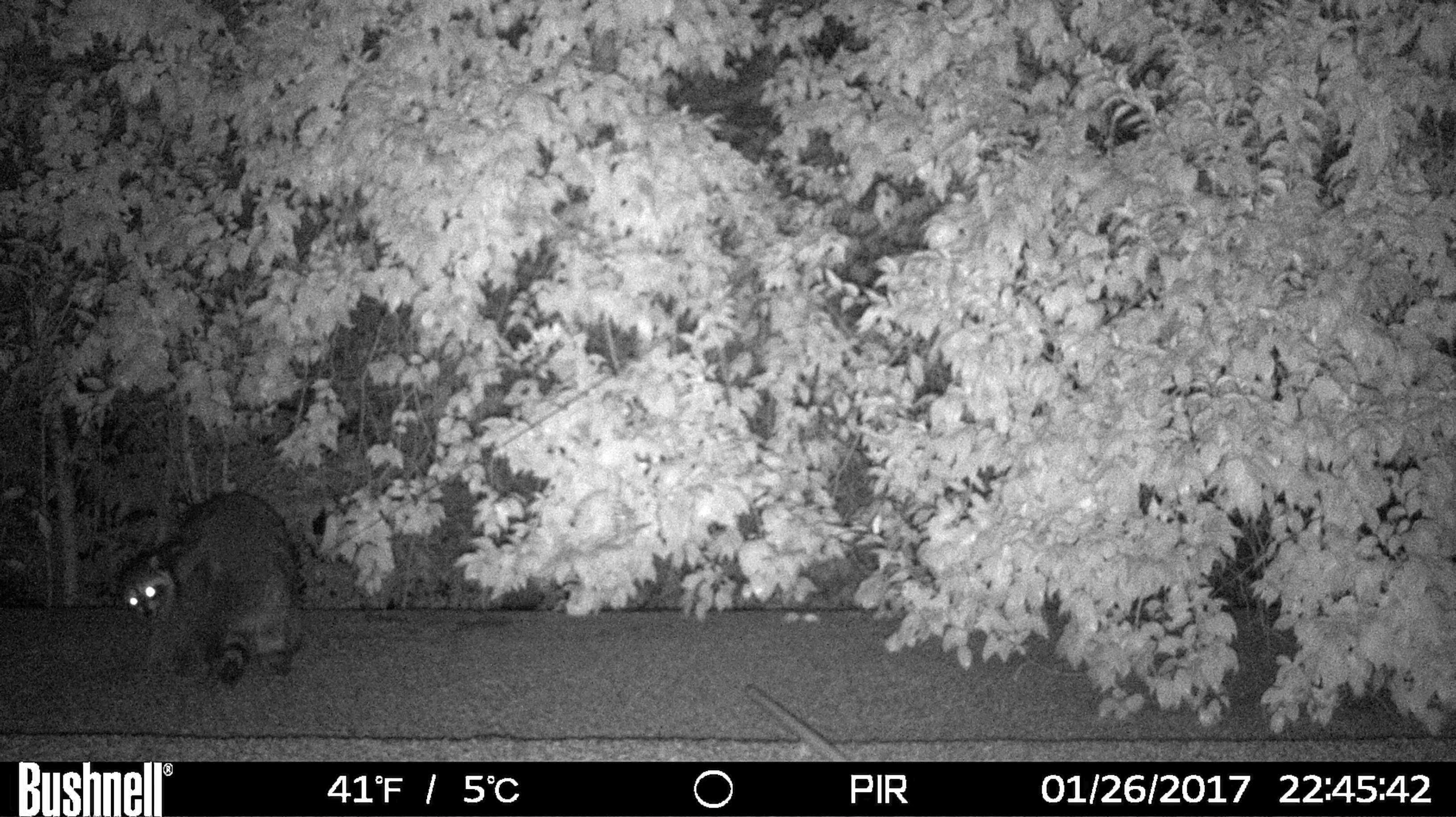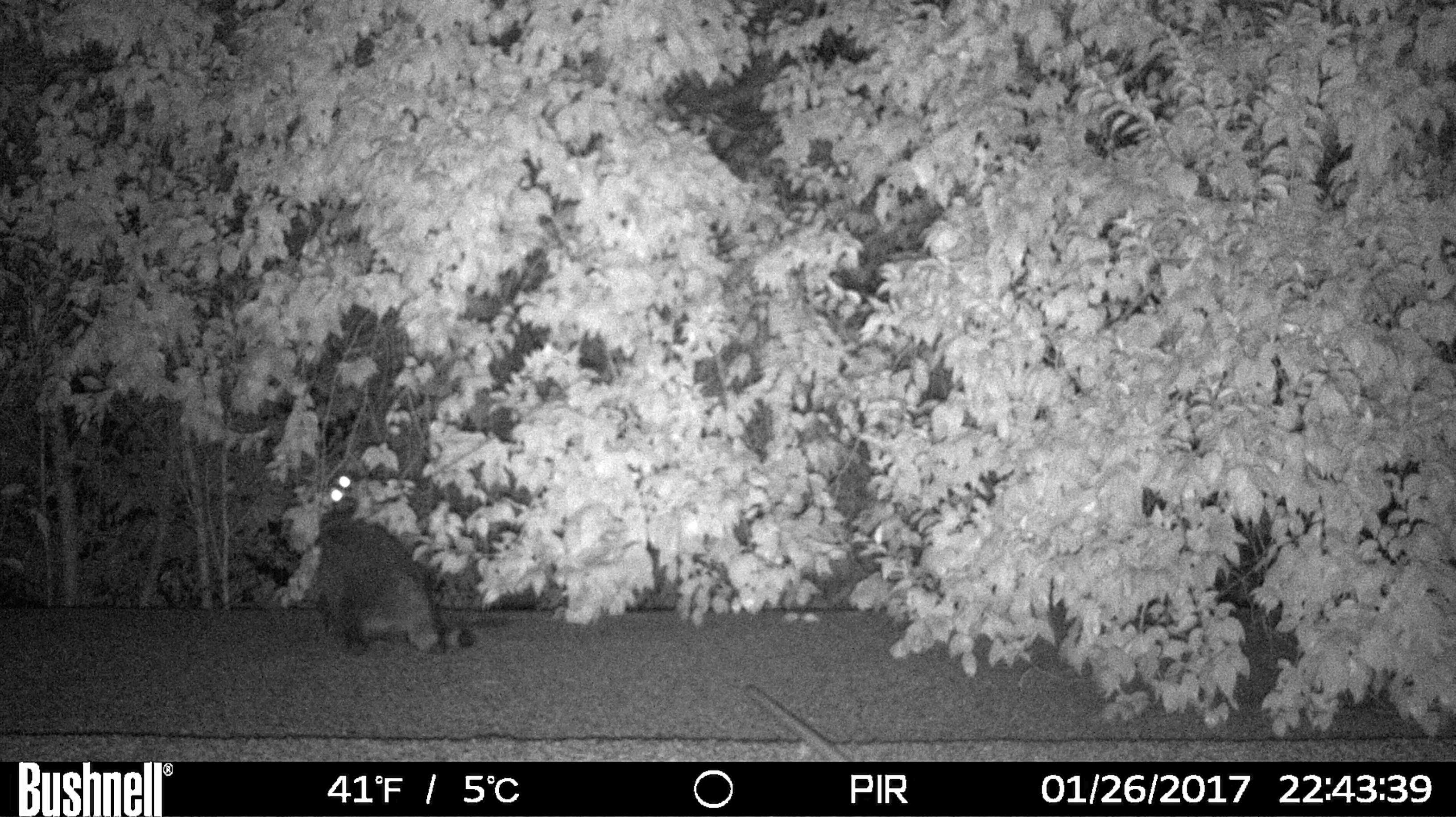 Tonight as they’re trotting around up there I know there are at least four. I haven’t stuck my head up there (not a particularly good time to be climbing in the dark, especially to invade the territory of some potentially pissed off critters) but at least twice I’ve heard them quite clearly walking by in single file (to hide their numbers, no doubt) and it’s not that hard to tell.