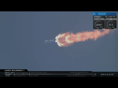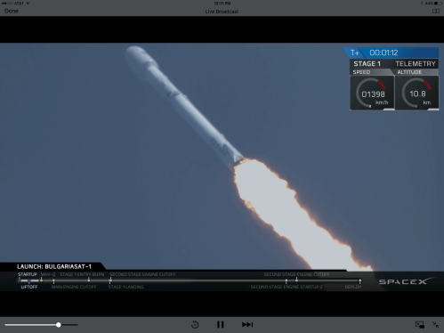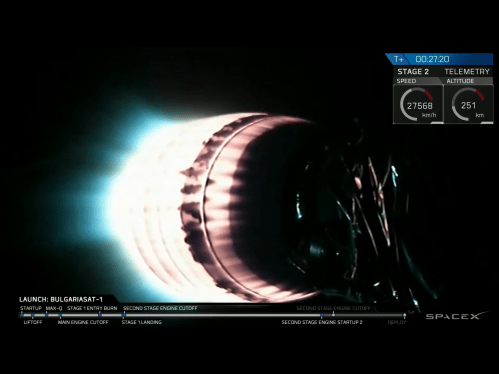The second stage is pressing on to orbit. While the launch and first stage recovery are spectacular, this is the part that pays the bills and lets them do it again and again and again.