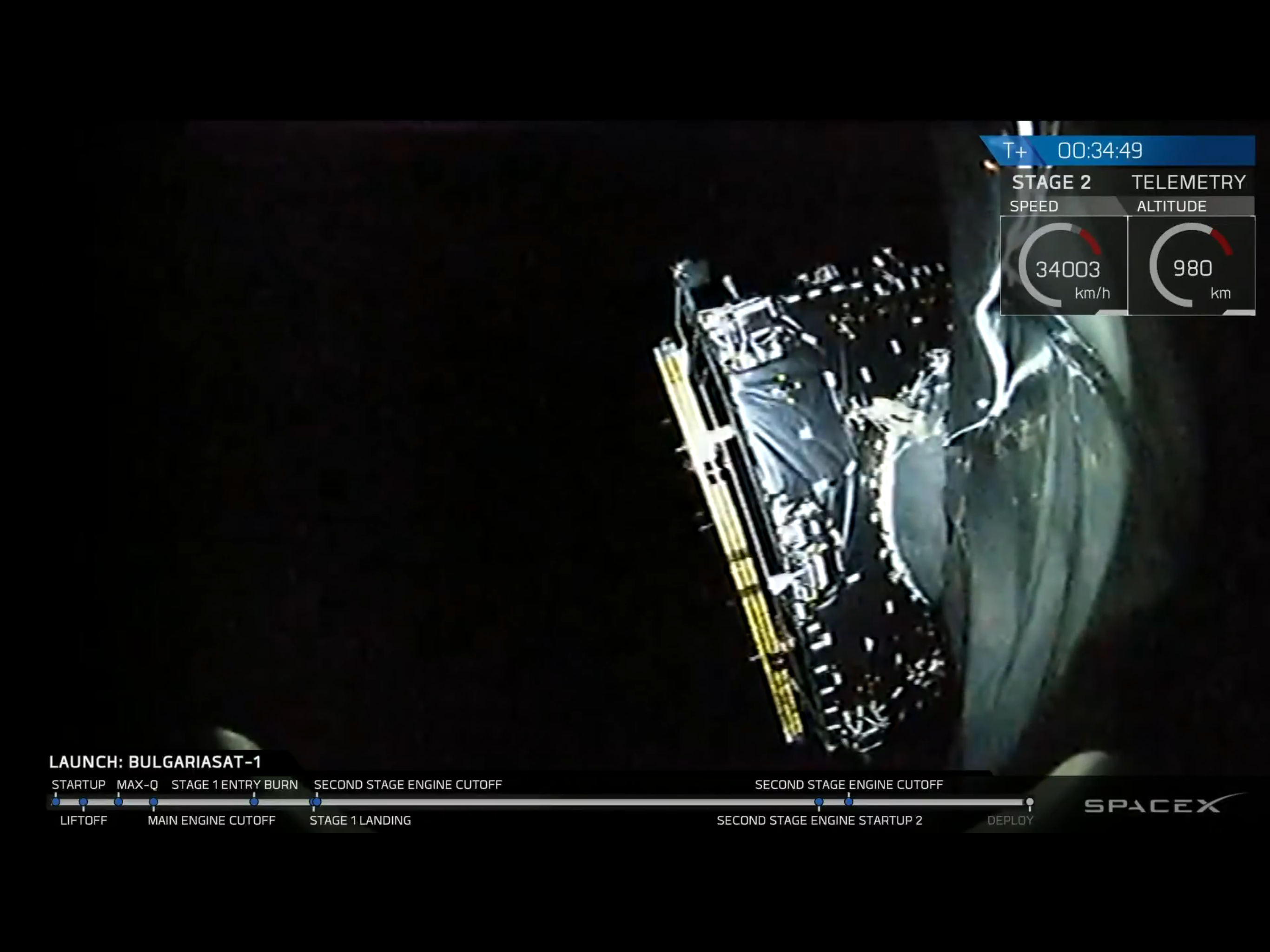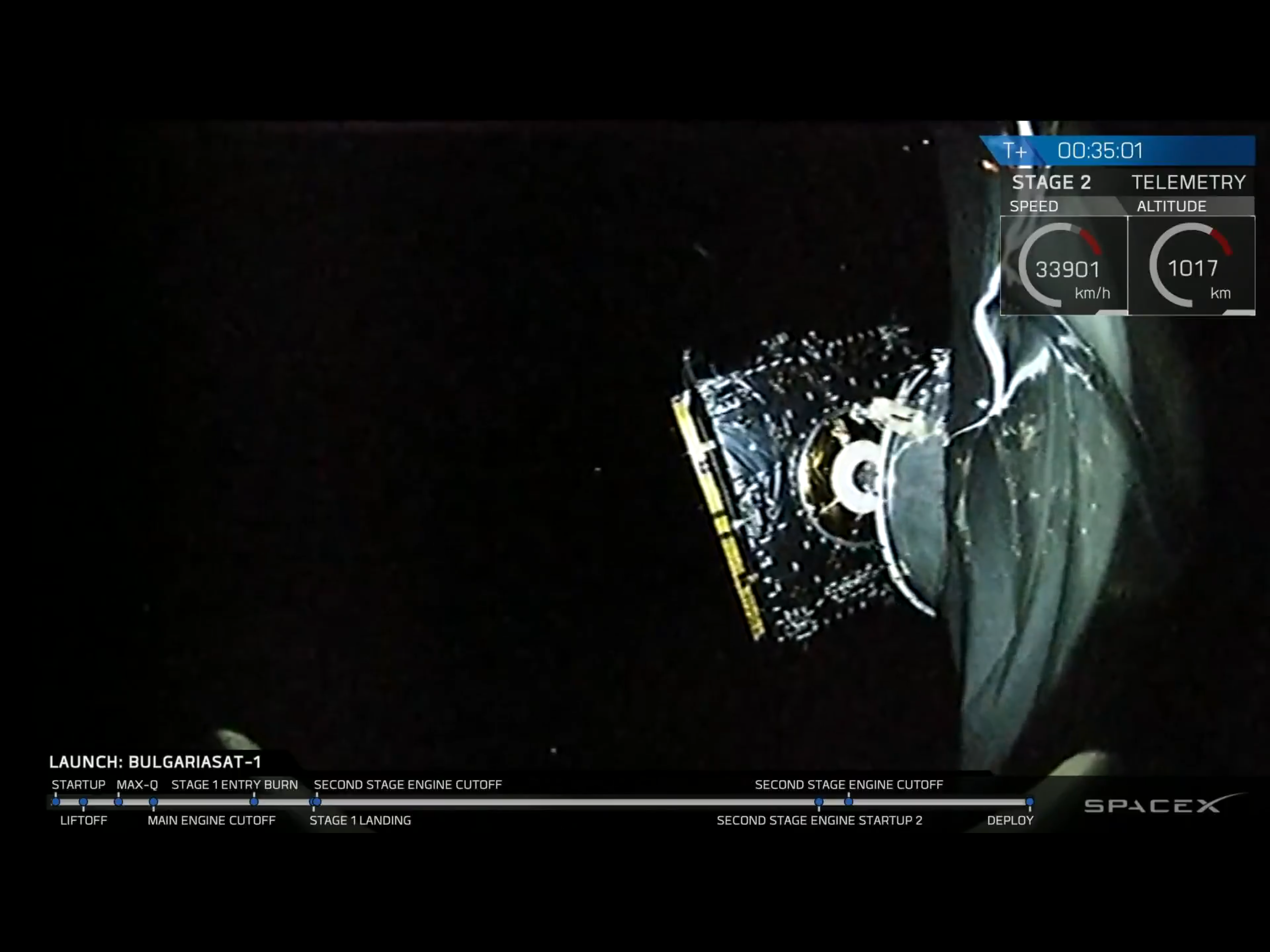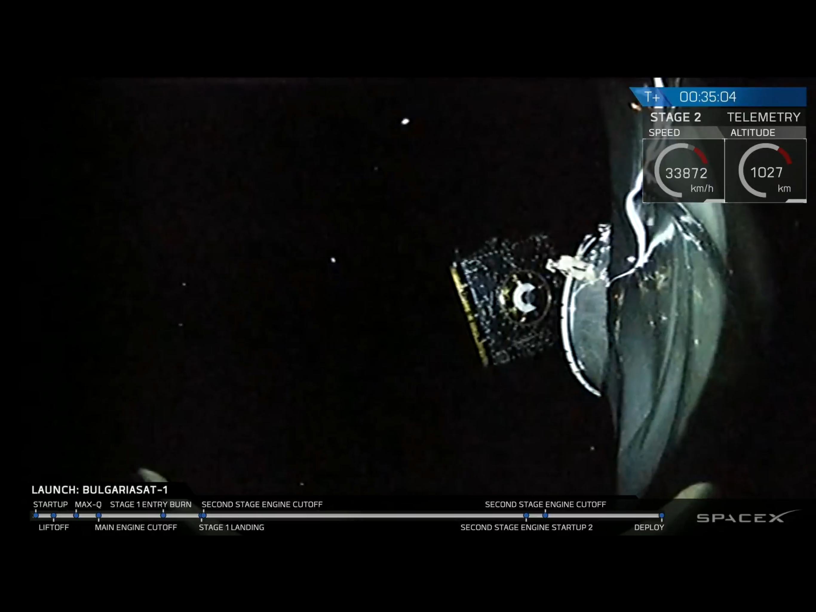 Once travelling at 34,000 km/hour, the Bulgarian communication satellite was cut loose, pushed away by springs, as we watch it going…