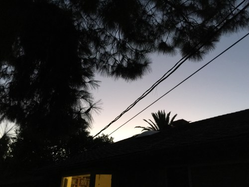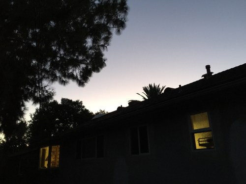 Still, the one good thing about the back yard is that all of the local street lights are blocked from view, so what little bit of the sky is visible is much more visible and dark than from the front yard. Plus, the gardeners and tree trimmers were there all day today, so it’s opened up a bit.