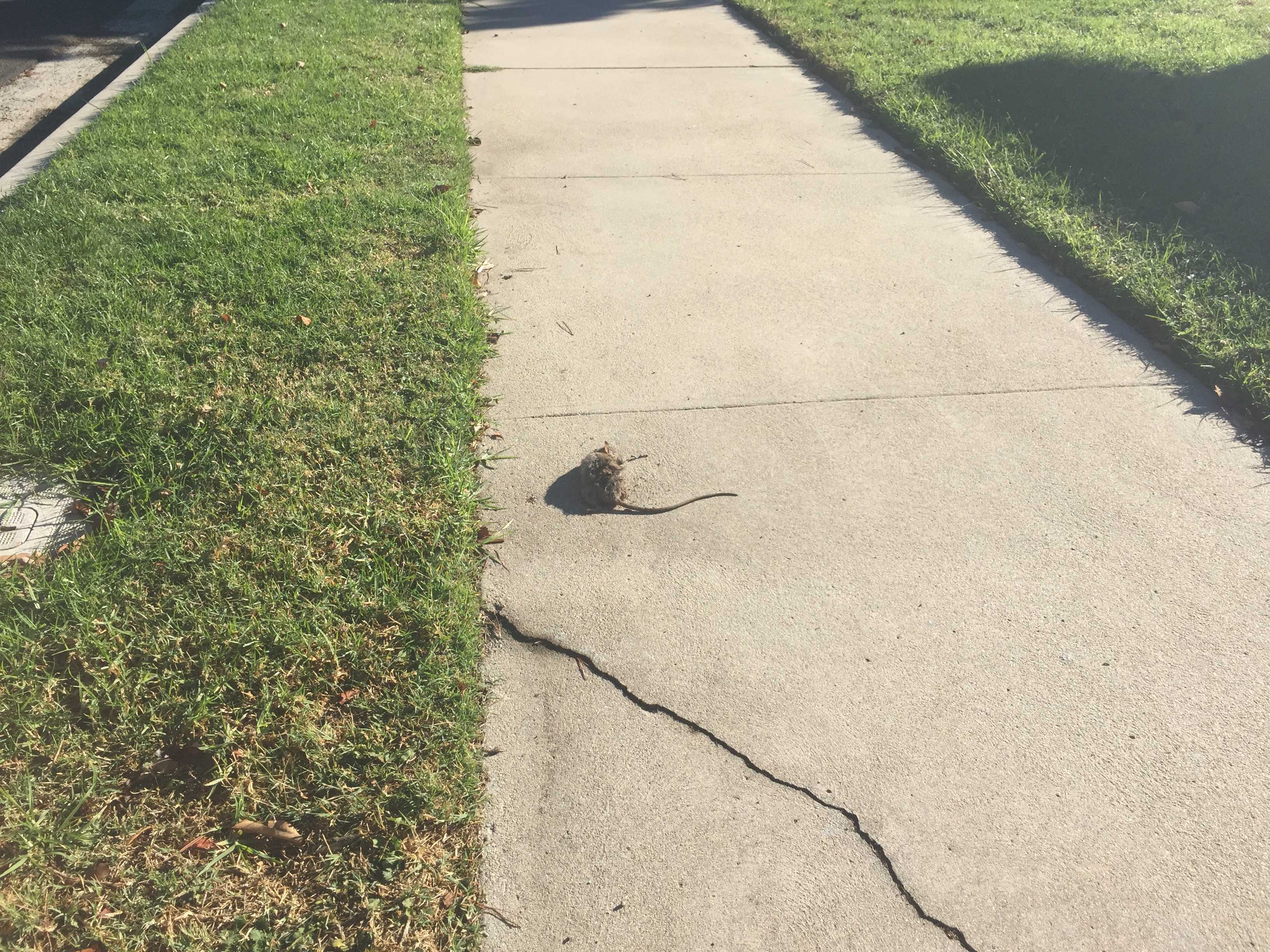 and a coyote or hawk or owl would have eaten it, not left it on the sidewalk,