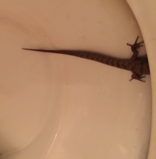 Trying to get out any way he could, he found an exit. Into our toilet.