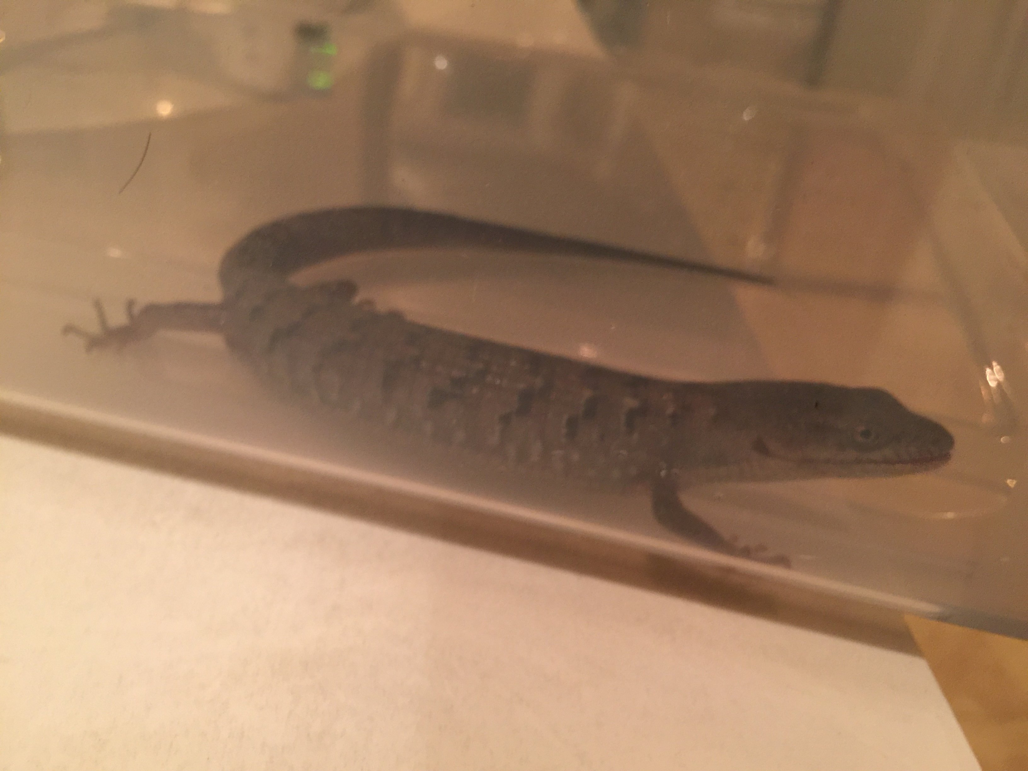 Part of it might have been the cold water and not particularly warm porcelain environment. Out on the sidewalk in the sun, these little dudes skitter around at about Warp Five. Here in the bin, the only thing that made me think he wasn’t dead was the tongue flicking in and out. Or it could have been a lack of food in the sewer. Or both. Or neither. (It should be blatantly obvious that I’m making wild ass guesses and making shit up as I go along here!)