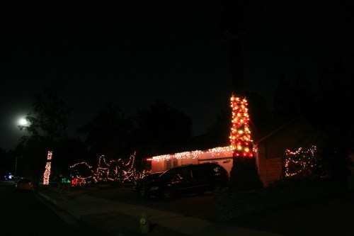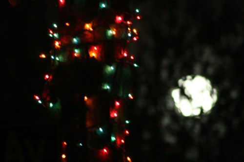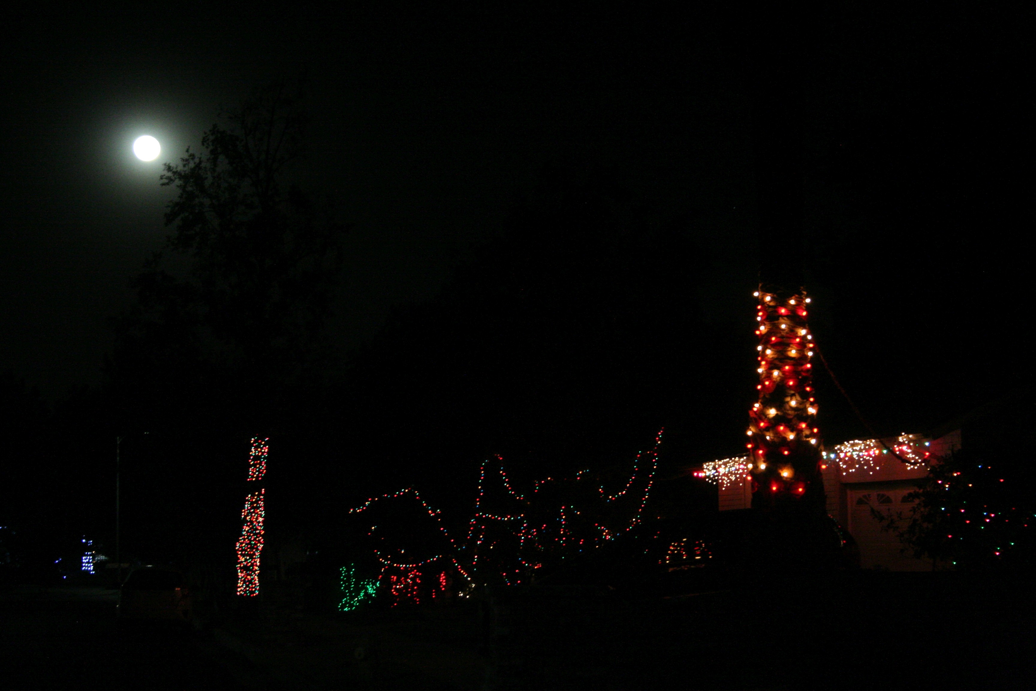 …it’s even worse. Overexpose the moon just enough so you can still see features, and you can barely tell there are Christmas lights to be seen here. But…