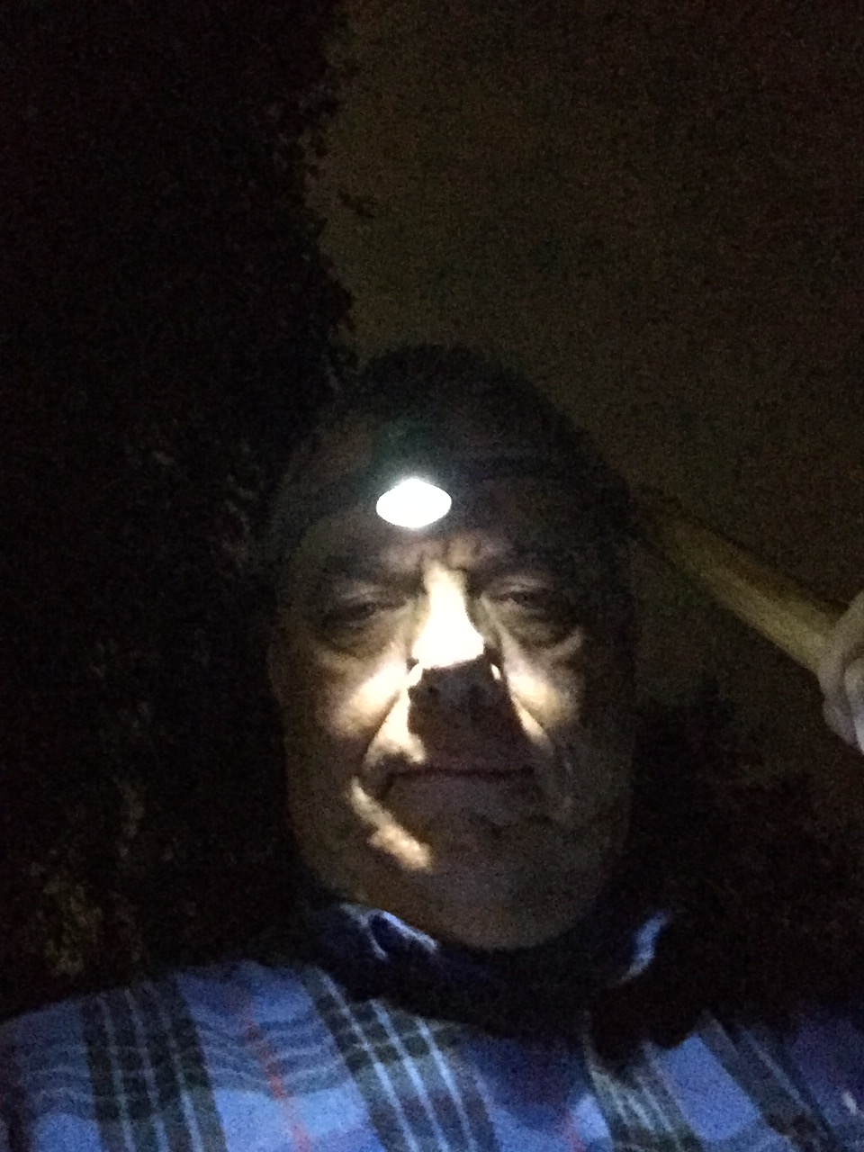 So I went and got a forehead mounted flashlight that I find very useful. (It also makes me almost unbelievably attractive…) I got my big, long stick with a hook, also very useful.