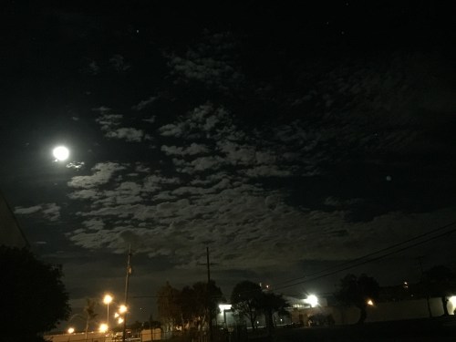 I was out at the hanger on a late-night run earlier and did see this Pre-Clipse view as the moon was headed toward the Earth’s shadow (which would have been to the lower left of the moon I think, not that you could see it).