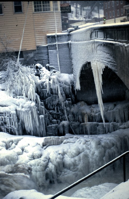 (Ice and cold – could it be coming up on fifty years. This was a time of cold and isolation, everything symbolized by ice and snow, black and white with dirty grey everywhere in between. But there’s that one spot of color – green means go. And with time this world melted and warmed into a place quite beloved in my memory. I survived, as did this grainy, flawed slide, somehow now echoing across the decades. Ice and cold again now, inside if not always out, looking again for that spot of color and a way to hang on and get through. Spring is coming.