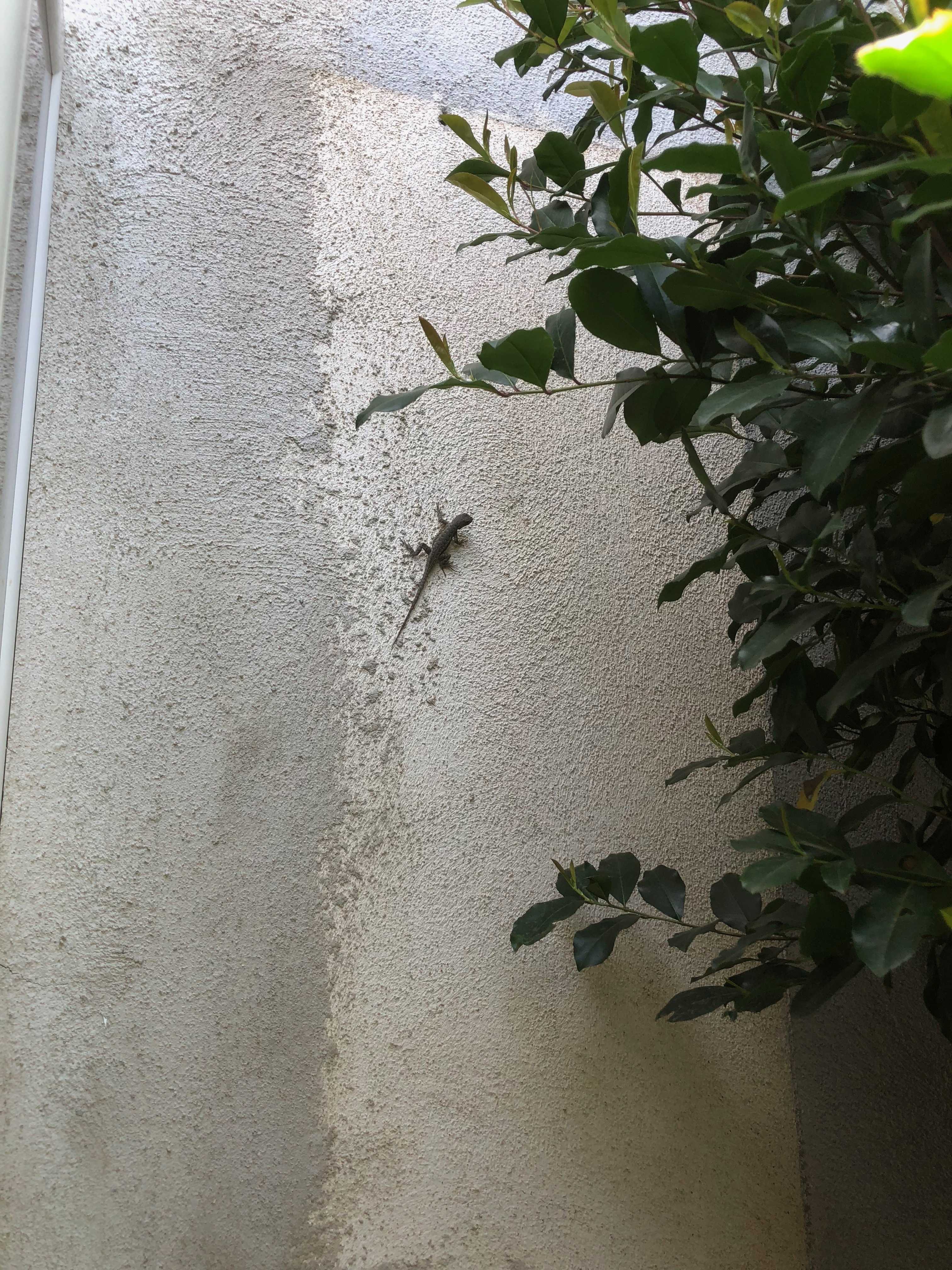 I’ve seen a couple of the “back yard Freds” hanging onto the stucco, but up until today I’ve never seen any of the “front yard Freds” doing it. I guess they’ve been comparing notes and taking lessons from each other.