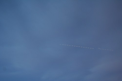 A single frame as ISS passed nearly overhead with that 737 having finally caught up. Again, you can see that there was vibration in the camera due to the tripod not being secure. The rest of the photos in this sequence were worse, so there was little point in stacking them.