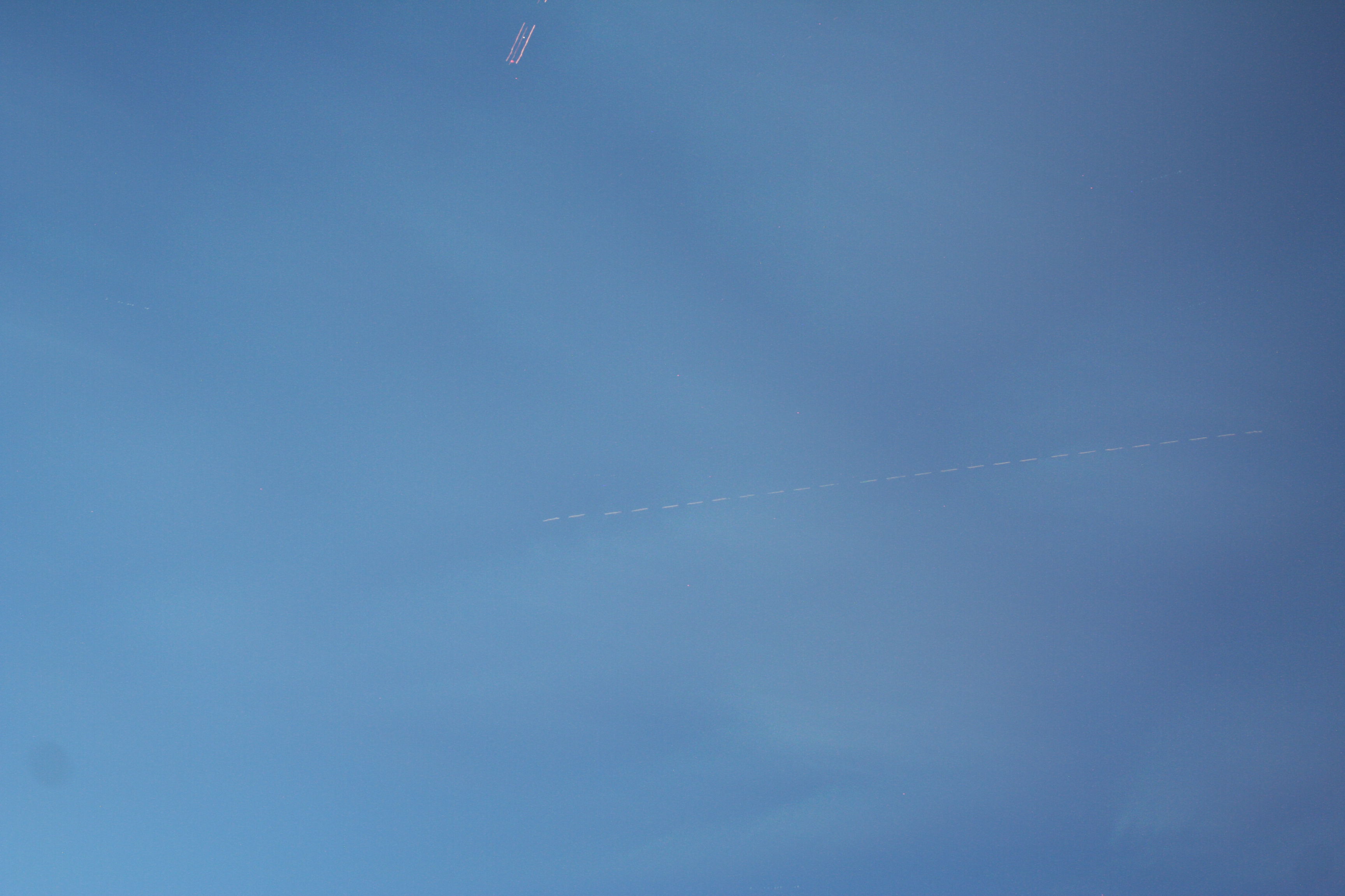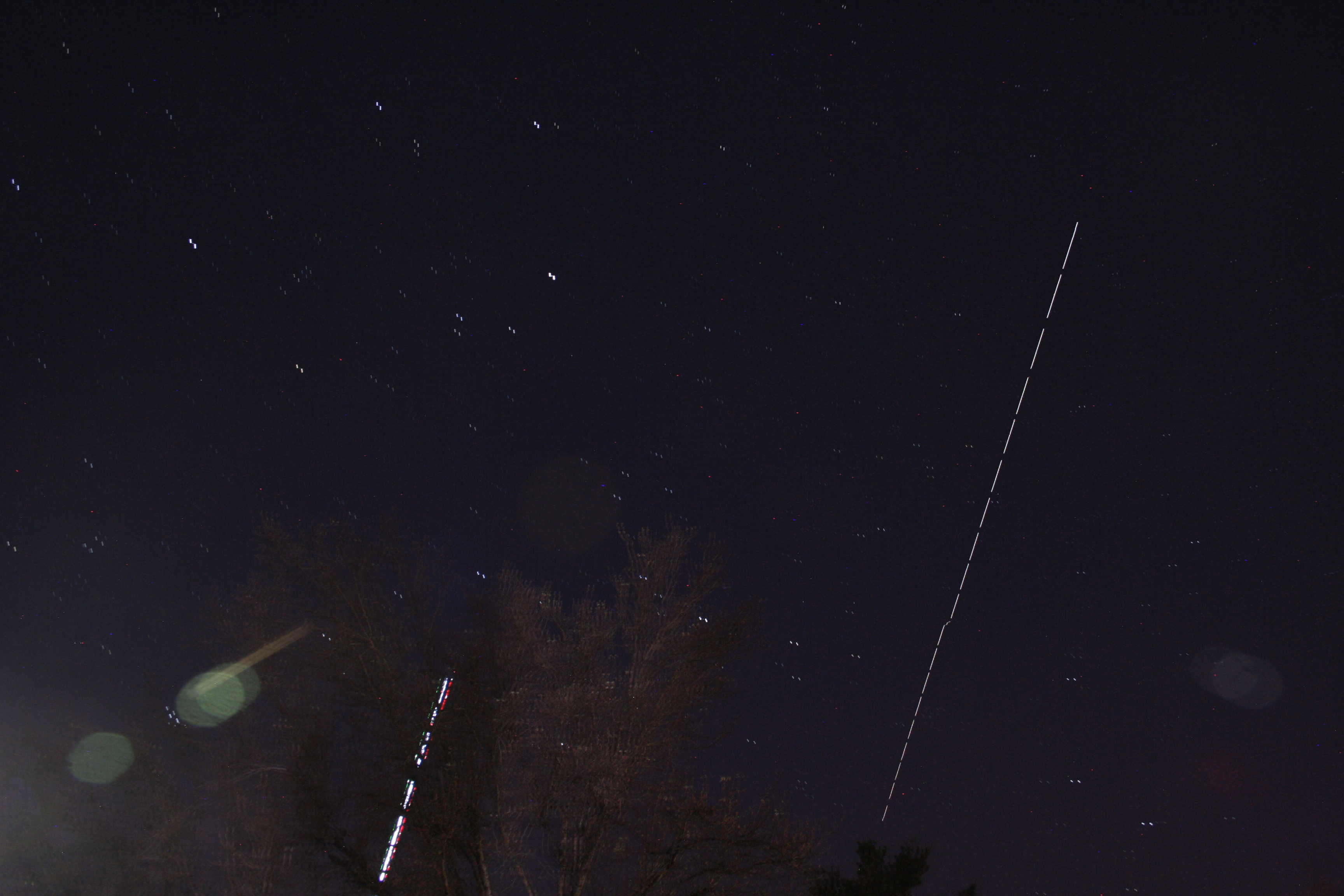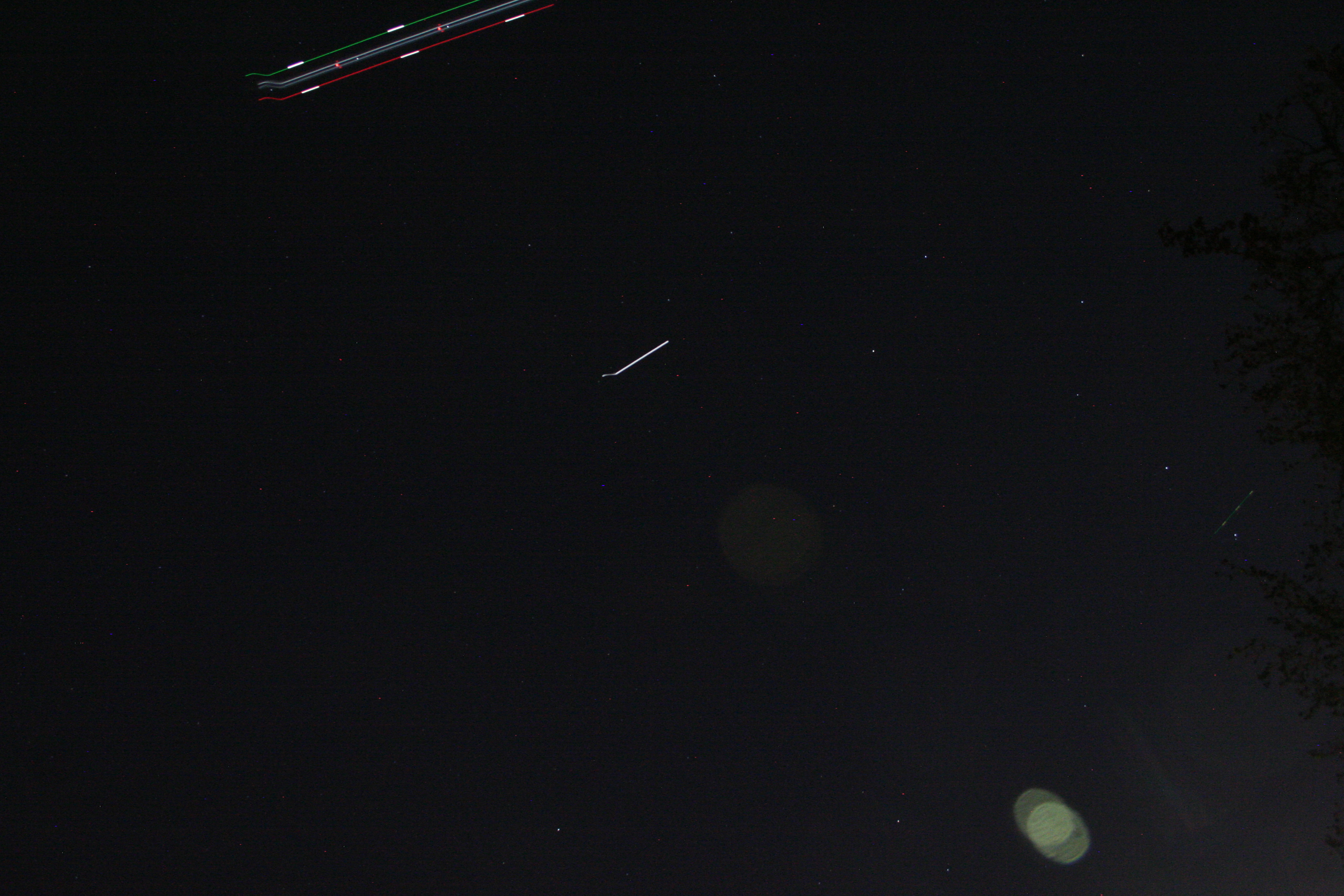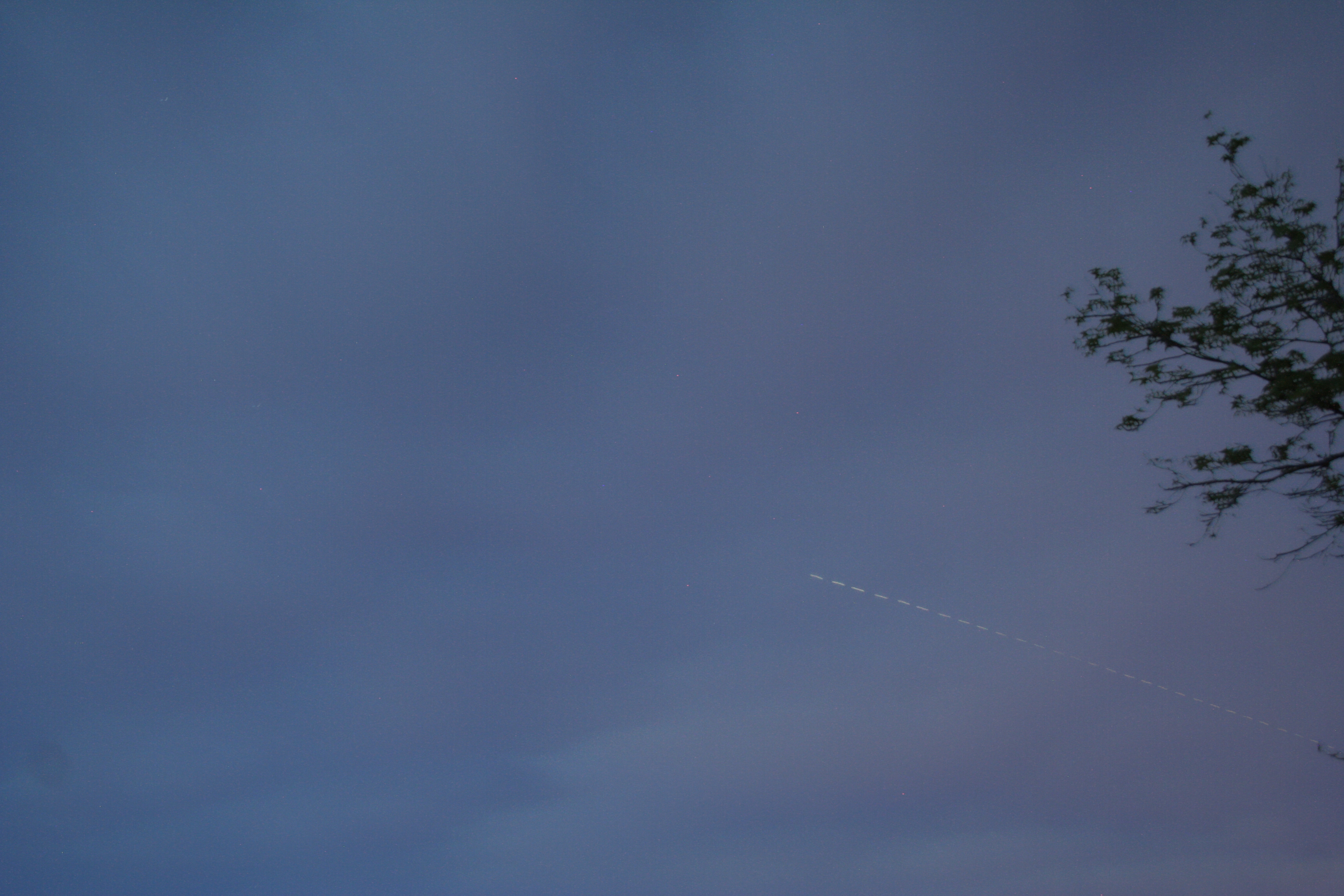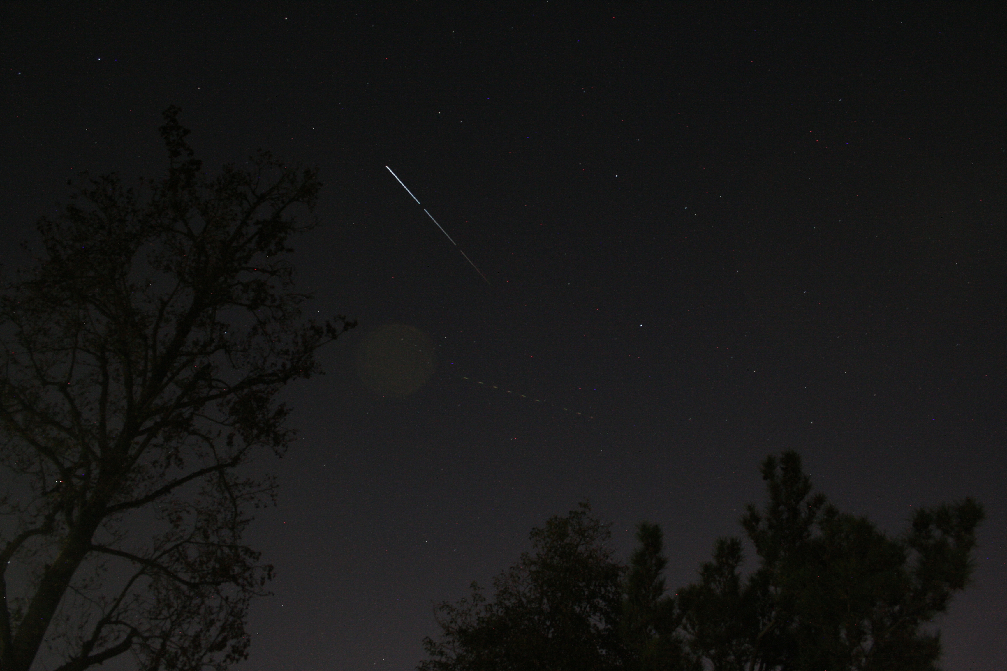 A single frame as ISS passed nearly overhead with that 737 having finally caught up. Again, you can see that there was vibration in the camera due to the tripod not being secure. The rest of the photos in this sequence were worse, so there was little point in stacking them.