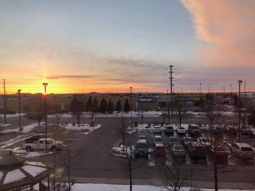 Meanwhile they do have pretty sunsets with the white ground a nice contrast. As well as a prominent sun pillar from the setting sun, the setting sun reflecting off of ice crystals high in the atmosphere.