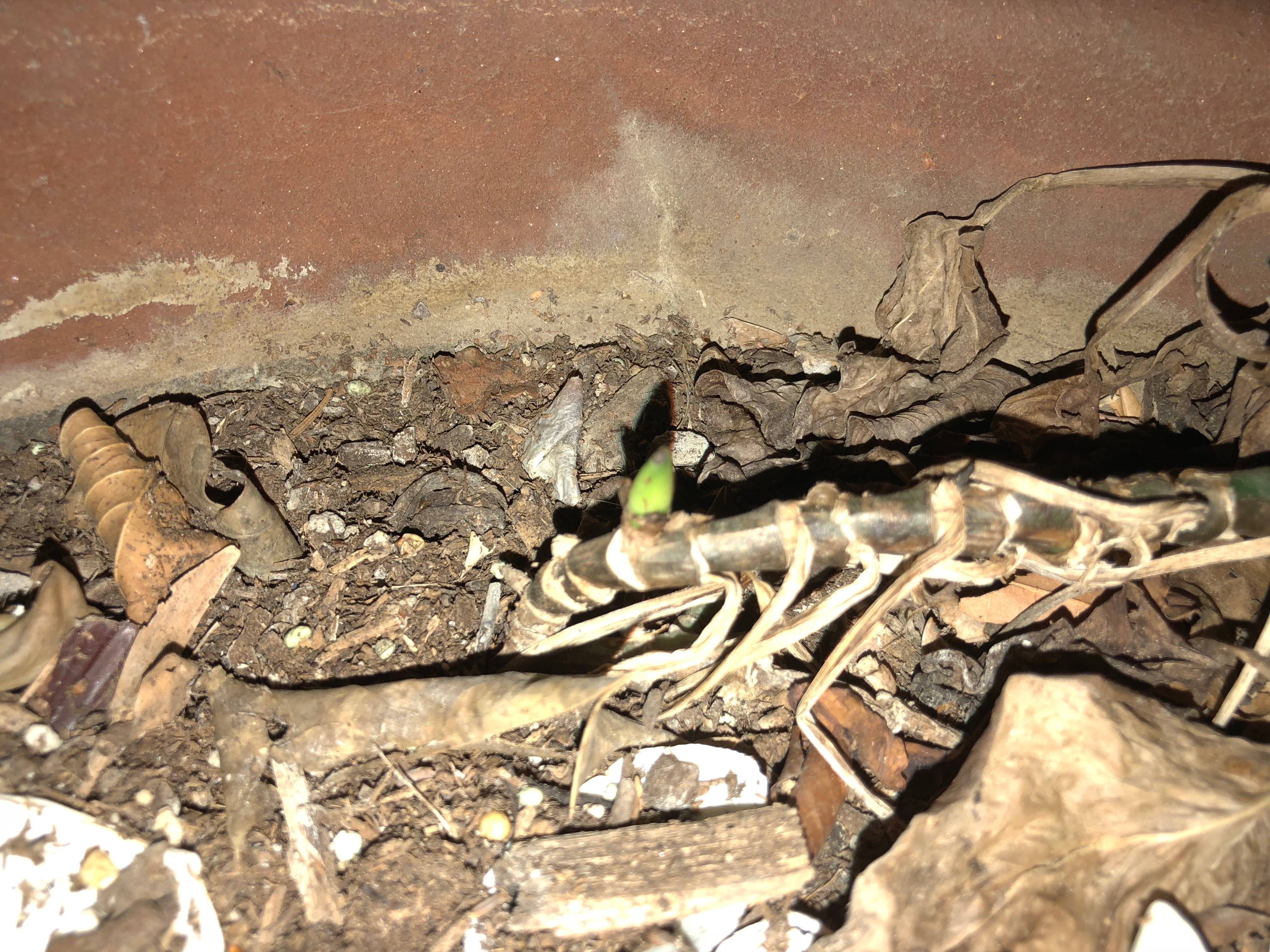 Then, when I was making the final big push to get out of the old house, my daughter and I noticed something. On that ropy stem, against all odds: