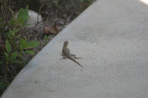 It didn’t take too long to realize that there are lizards in the yard here at the new yard as well. Today was sunny and hot, so I got out the camera with the big lens (these lizards are a bit skittish, won’t let me get as close as the Freds did, but then again, the Freds knew that something was up as we were moving out) and did a quick survey of the back yard.